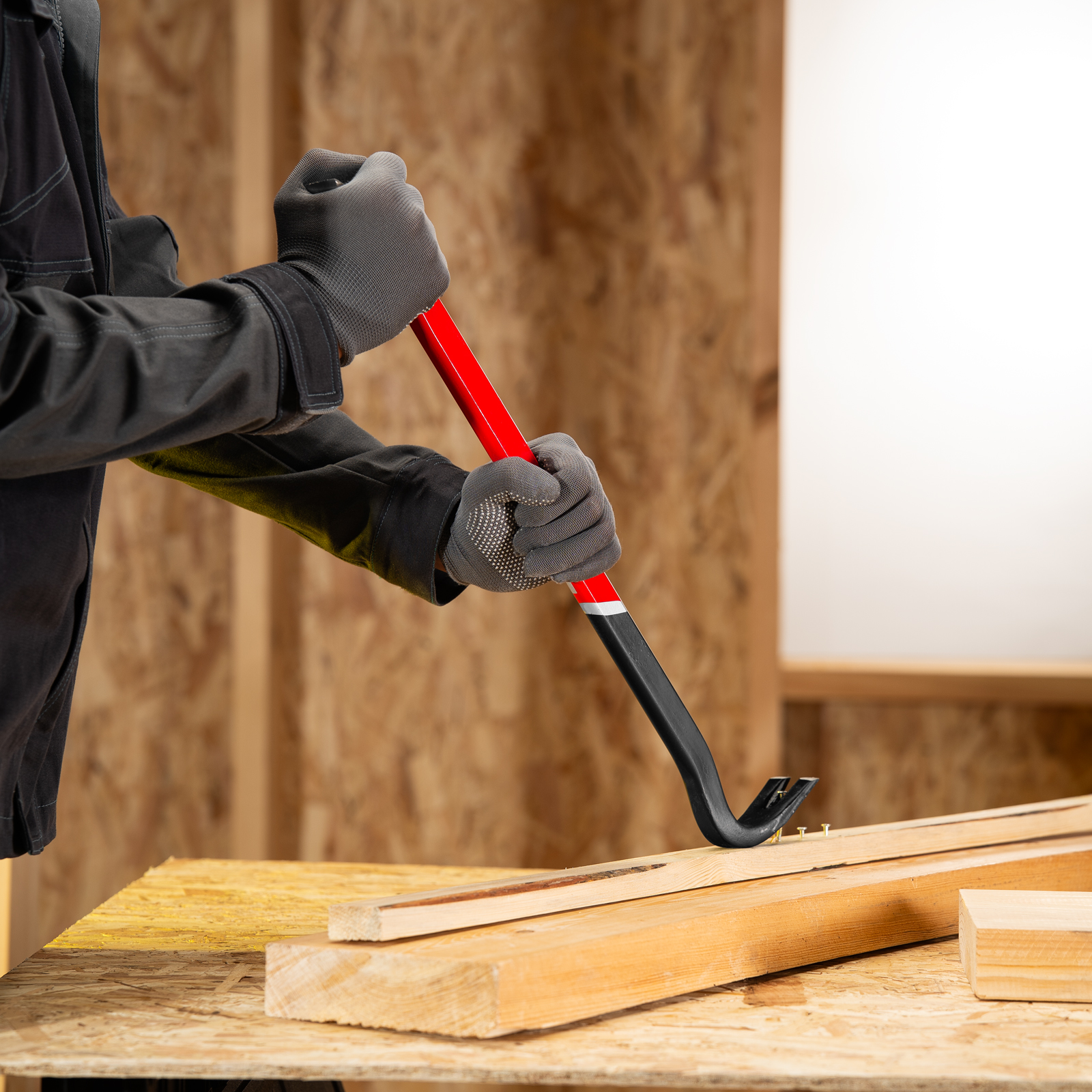 Усиленный лом-гвоздодер Matrix 25233 размером 600 х 29 х 15 мм предназначен для демонтажа различных конструкций. Им можно извлекать гвозди, разбирать ограждения и деревянную тару, демонтировать старую обшивку стен или крыши. Тело инструмента имеет овальную форму, поэтому выдерживает повышенные нагрузки. Лом-гвоздодер необходим на строительной площадке, пригодится также и в быту.