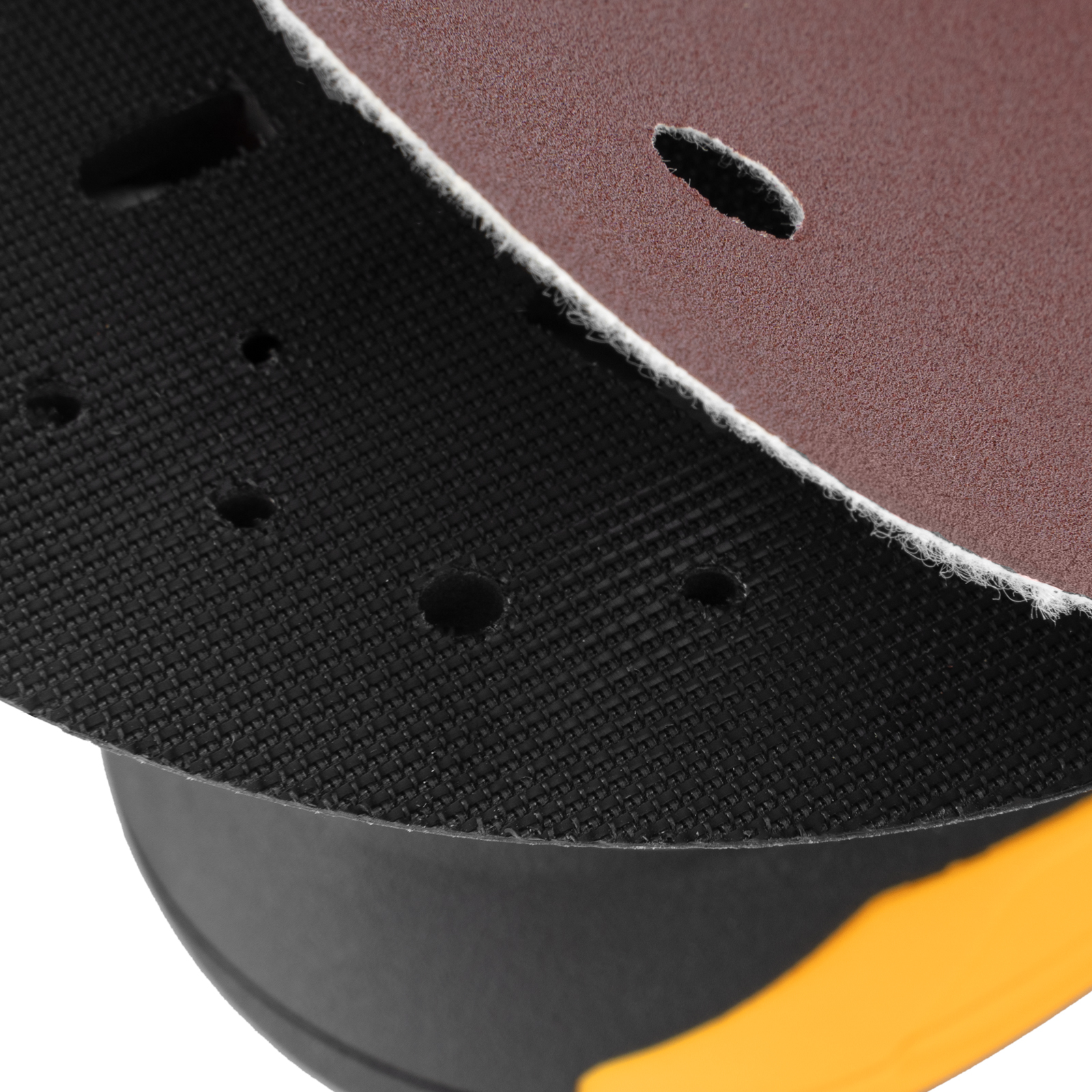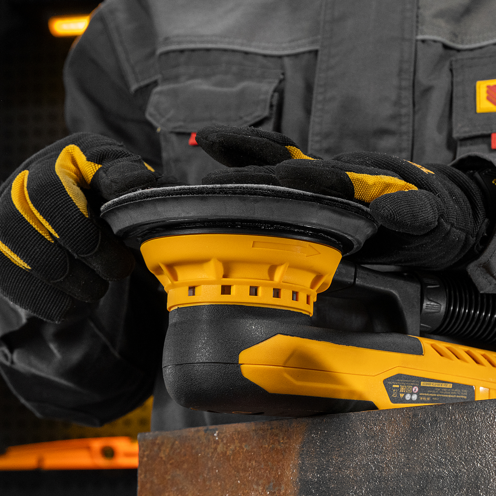 Эксцентриковая шлифмашина совместима со шлифовальными кругами диаметром 150 мм. Во время работы подошва совершает вращательные движения в комбинации с колебательными, что обеспечивает повышенную производительность и успешное решение поставленных задач.