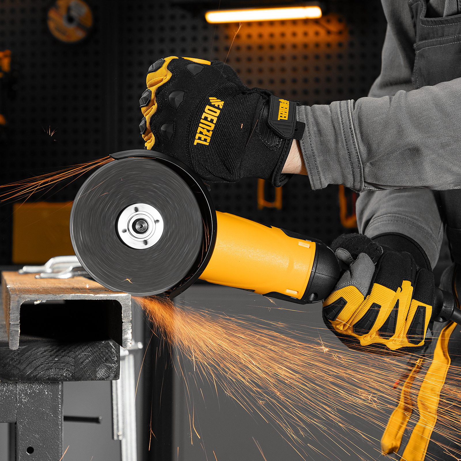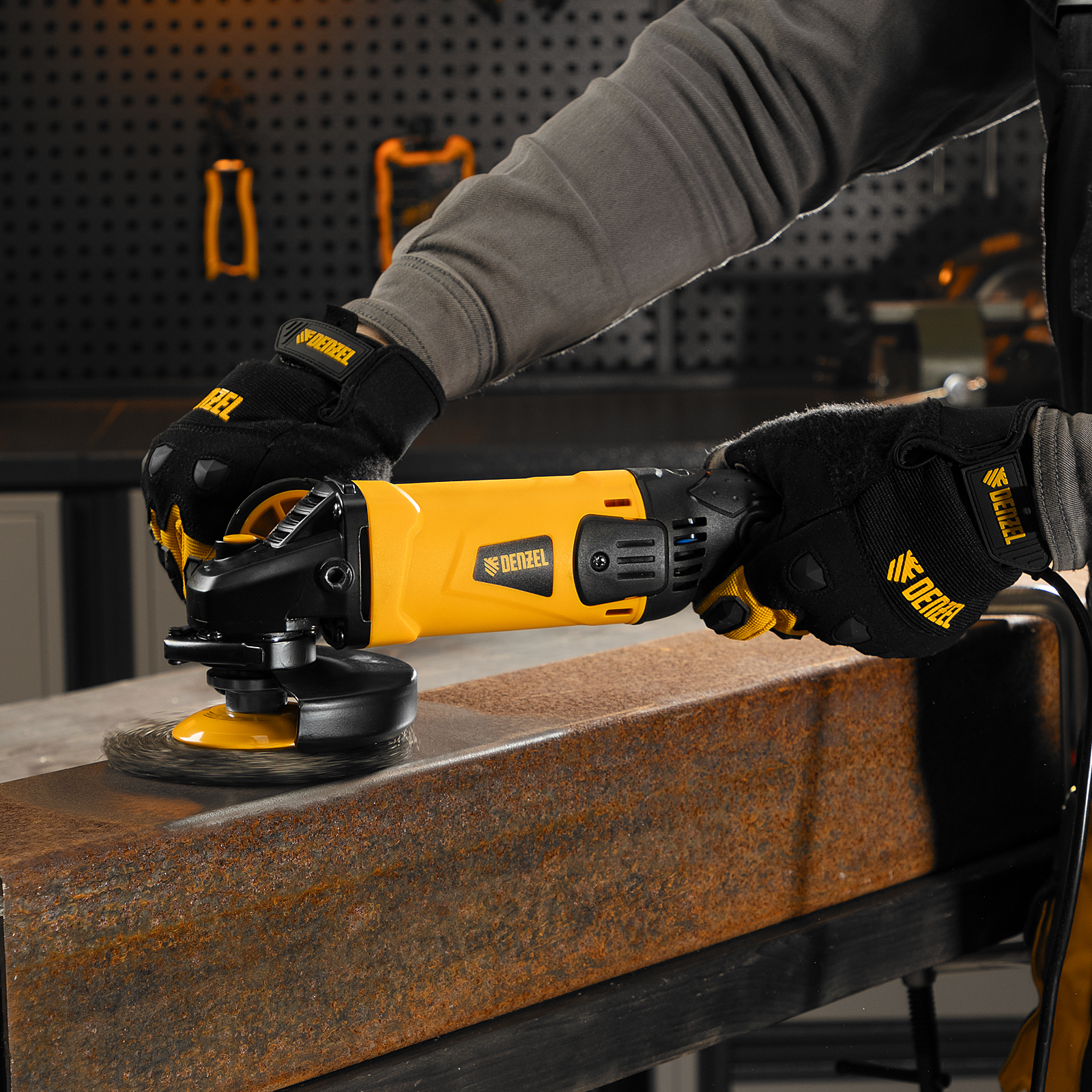 Угловая шлифовальная машина Denzel AG125-1100A 26908 мощностью 1100 Вт совместима с насадками максимальным диаметром 125 мм, поддерживает частоту вращения шпинделя от 3000 до 11000 об/мин, благодаря чему эффективно справляется с обработкой и зачисткой поверхностей, а также резкой, шлифовкой металла толщиной до 35 мм и камня. Пригодится дома, в гараже и на даче.