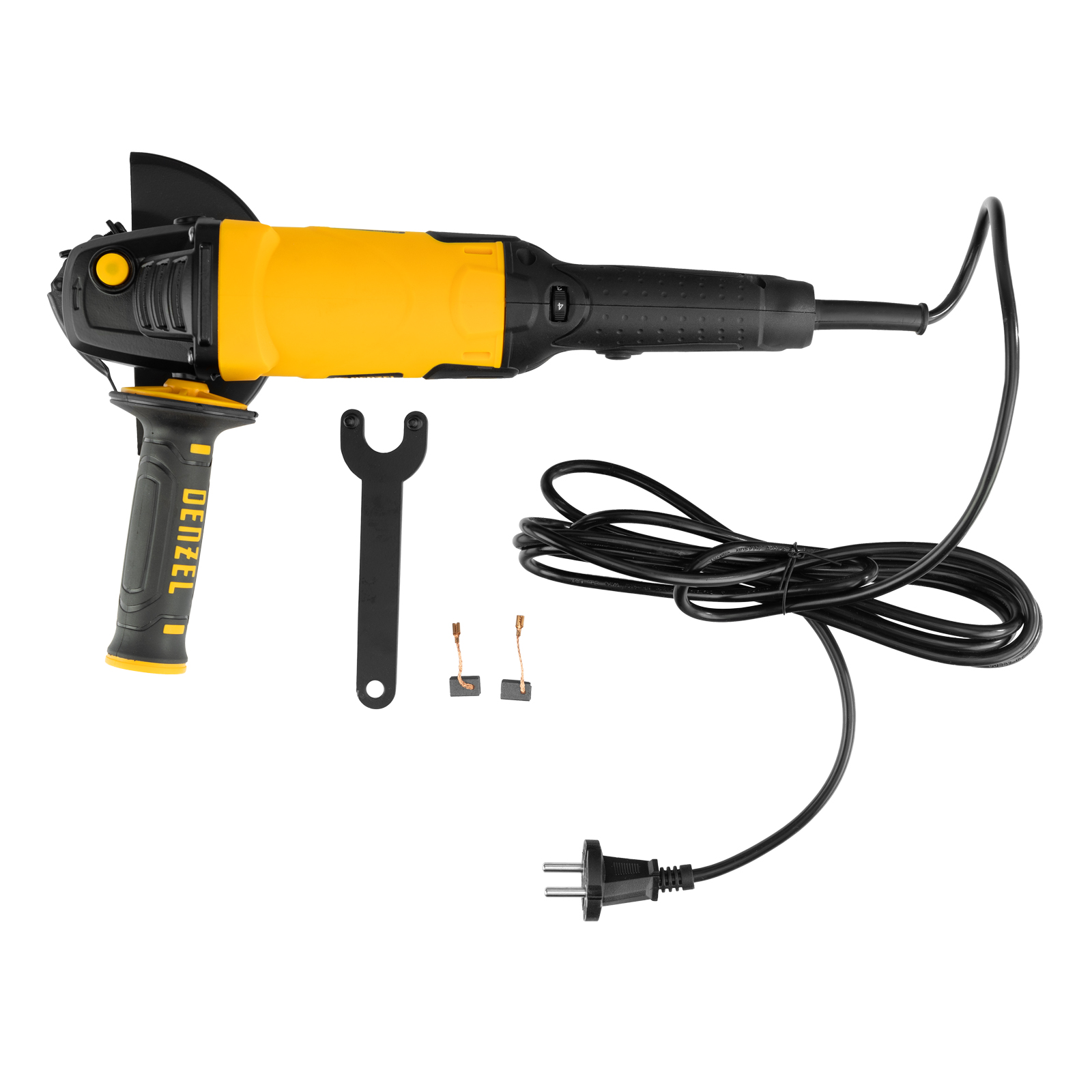 - Удобное обслуживание — в комплект входят специальный ключ и запасные угольные щетки.