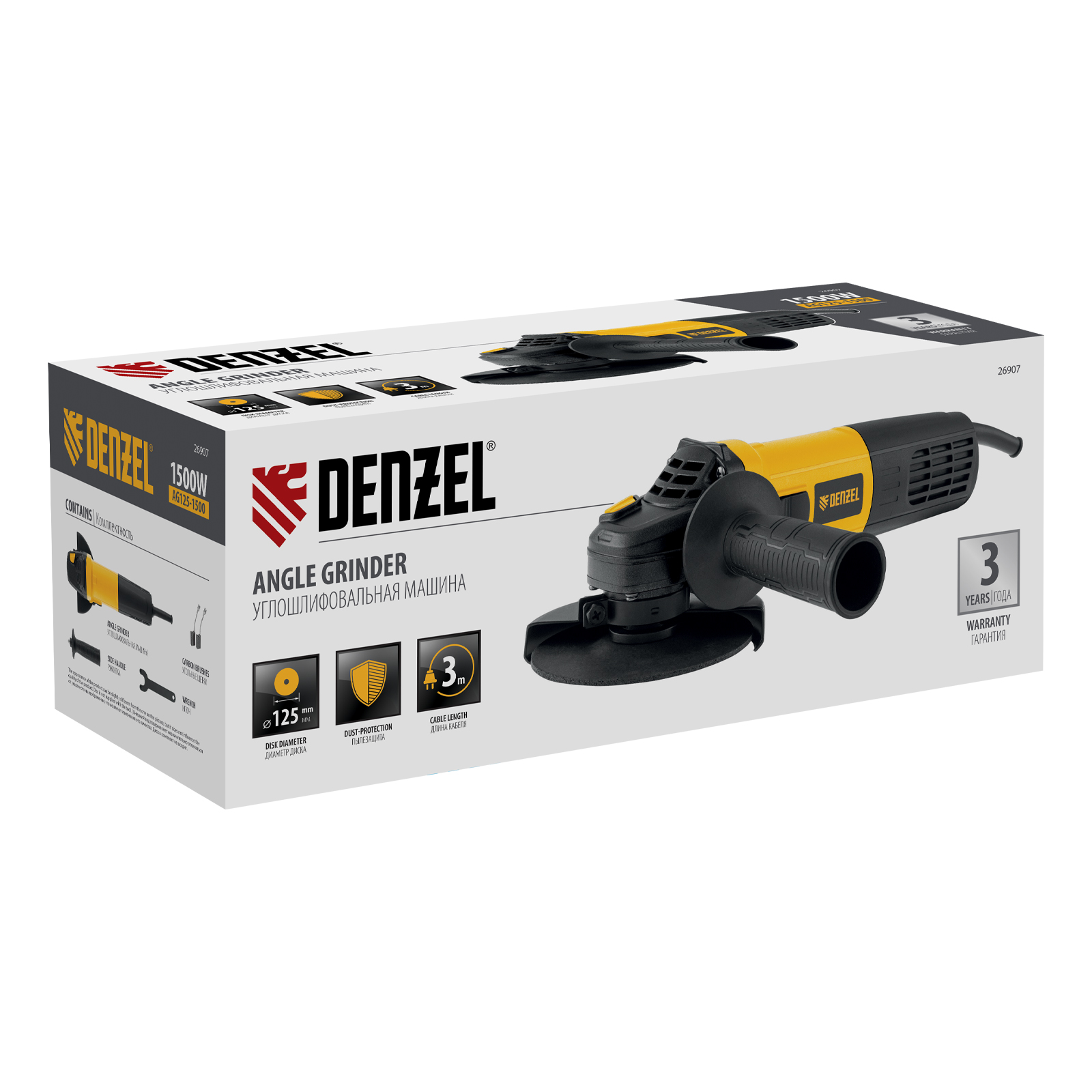Машина шлифовальная угловая AG125-1500, 1500 Вт, 125 мм, 3000-11000 об/мин Denzel в Уфе