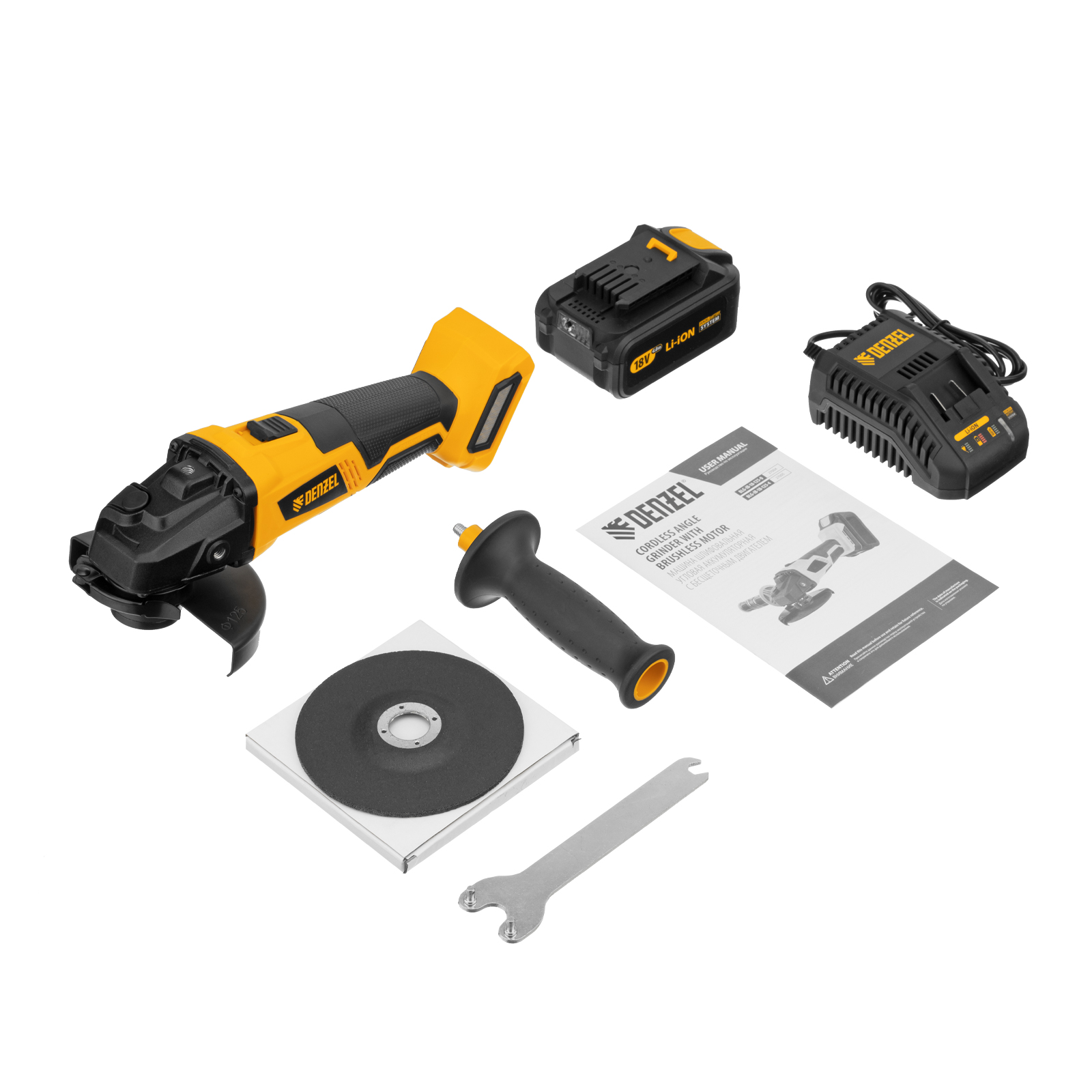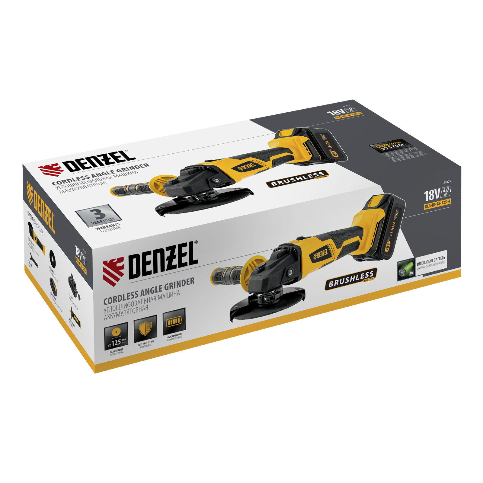 Машина углошлифовальная аккумуляторная бесщет. BLG-IB-18-125-4, Li-ion, 18 В Denzel в Уфе