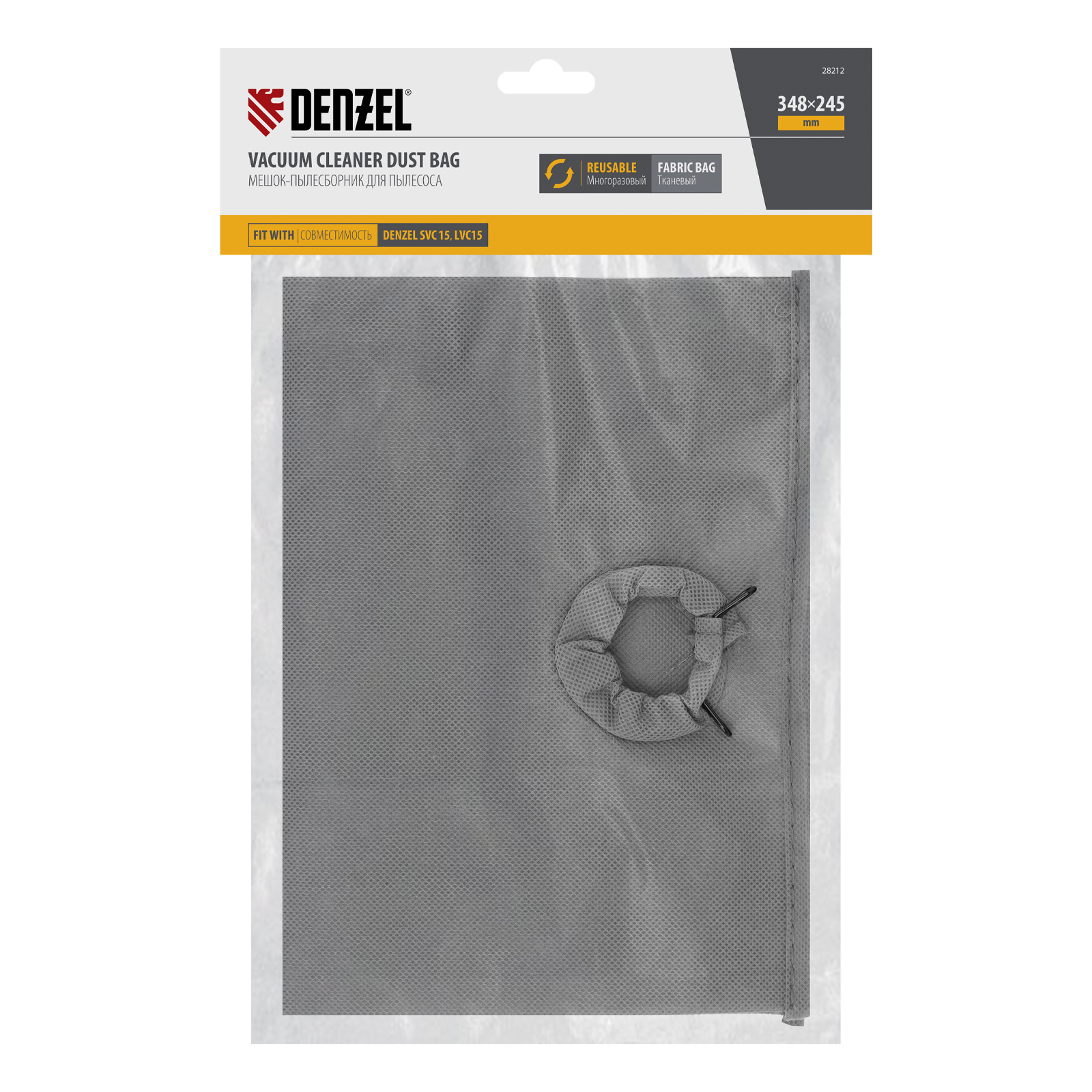 Многоразовый тканевый мешок Denzel 28212 — сменный аксессуар для строительных пылесосов SVC15 (28201), LVC15 (28291). Устанавливается в бак пылесоса и служит для сбора мусора во время сухой уборки.