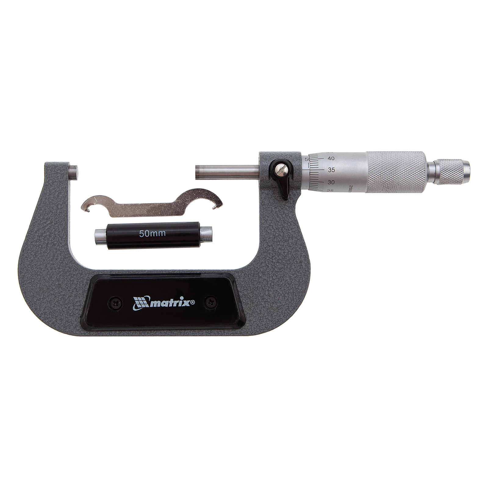 Микрометр механический Matrix 317755 используется для измерения толщины листового металла и деталей размером 50-75 мм. Обеспечивает высокую точность результатов — шаг измерения составляет 0,01 мм с допустимой погрешностью ±0,004 мм. Комплектуется установочной мерой, позволяющей при необходимости произвести настройку прибора. Микрометр будет полезен на производстве, в слесарной мастерской и автосервисе.