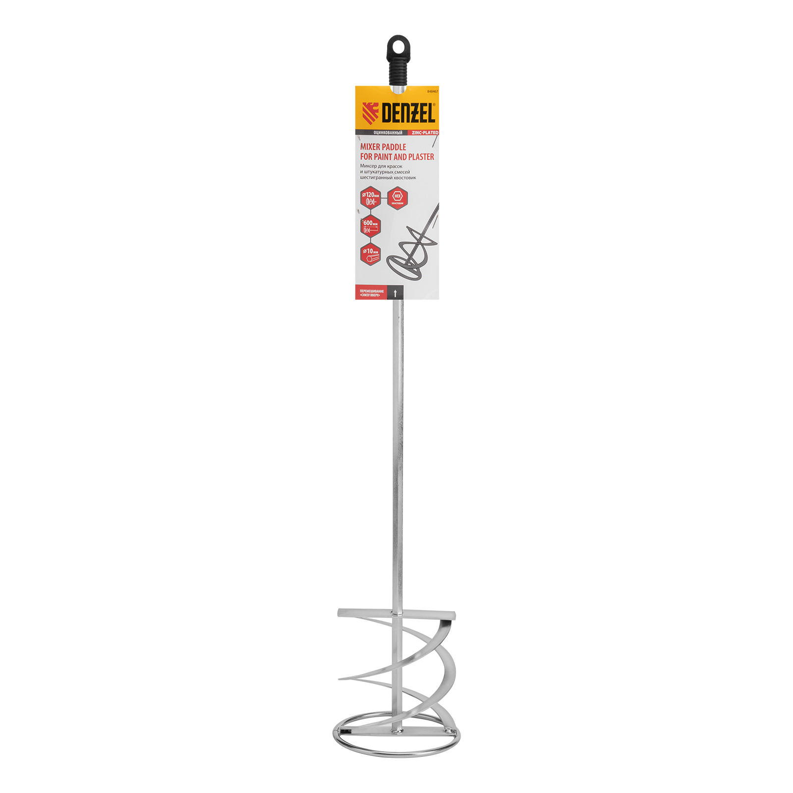 Миксер для красок и штукатурных смесей, 120 х 600 мм, оцинкованный, шестигранный хвостовик 10мм Denzel в Уфе