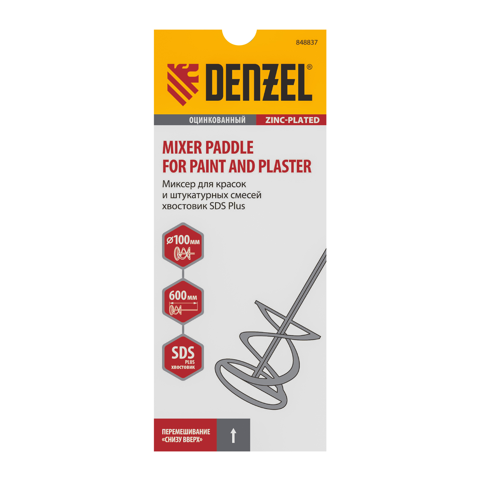 Миксер для красок и штукатурных смесей, 60 х 400 мм, оцинкованный, шестигранный хвостовик 8 мм Denzel в Уфе