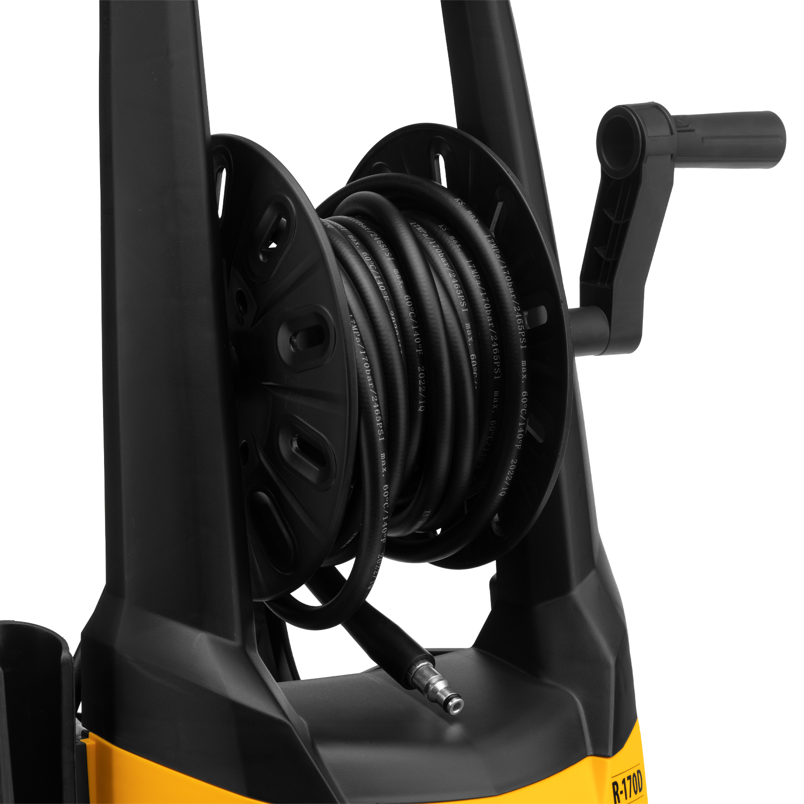 Моечная машина высокого давления Denzel R-170D 58229 с барабаном, мощностью 2000 Вт и производительностью 360 л/ч, подает струю воды под давлением 170 бар и используется для очищения поверхностей. Позволяет быстро удалить загрязнения с кузова автомобиля, мотоцикла, велосипеда, садового и хозяйственного инвентаря, очистить садовую дорожку и террасу, а также стены и окна строений. Источником воды может служить водопроводная линия, а также любая емкость — машина способна работать в режиме самовсасывания. Мойка пригодится владельцам загородных участков.