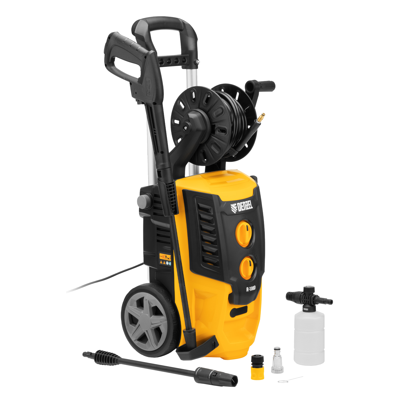 Моечная машина высокого давления R-180D, 2200 Вт, 180 бар, 380 л/ч, с барабаном Denzel