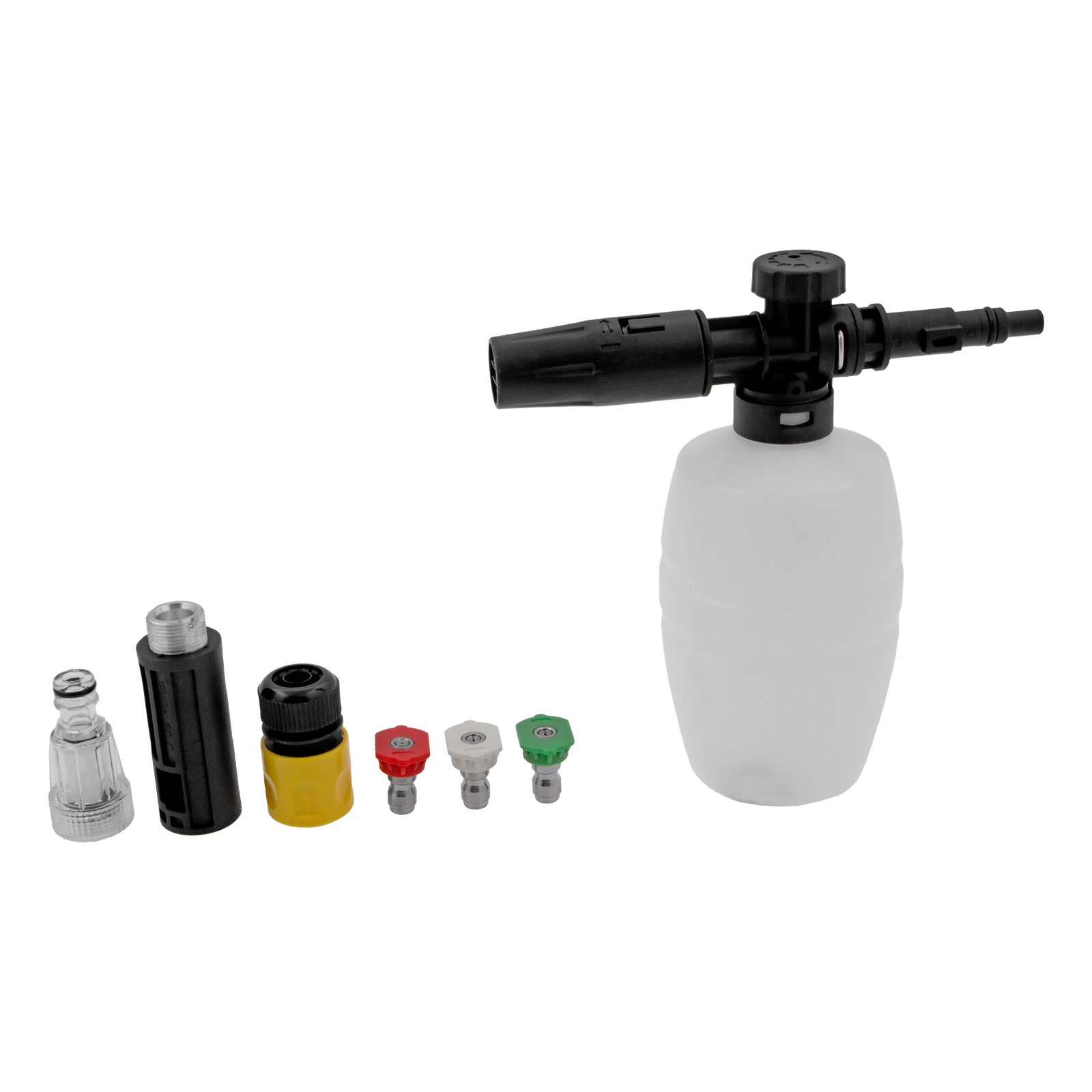 Мойка - 1 штШланг высокого давления - 1 штПистолет моечный - 1 штСтальная насадка-удлинитель - 1 штНасадки-сопла (0°, 25° и 40°) - 3 штВходной штуцер с фильтром - 1 штБыстросъемный адаптер для входного шланга - 1 штПереходник для пенокомплекта - 1 штКронштейн для кабеля - 1 штДержатель пистолета - 1 штИгла для прочистки сопла - 1 штРуководство по эксплуатации с гарантийным талоном - 1 шт |