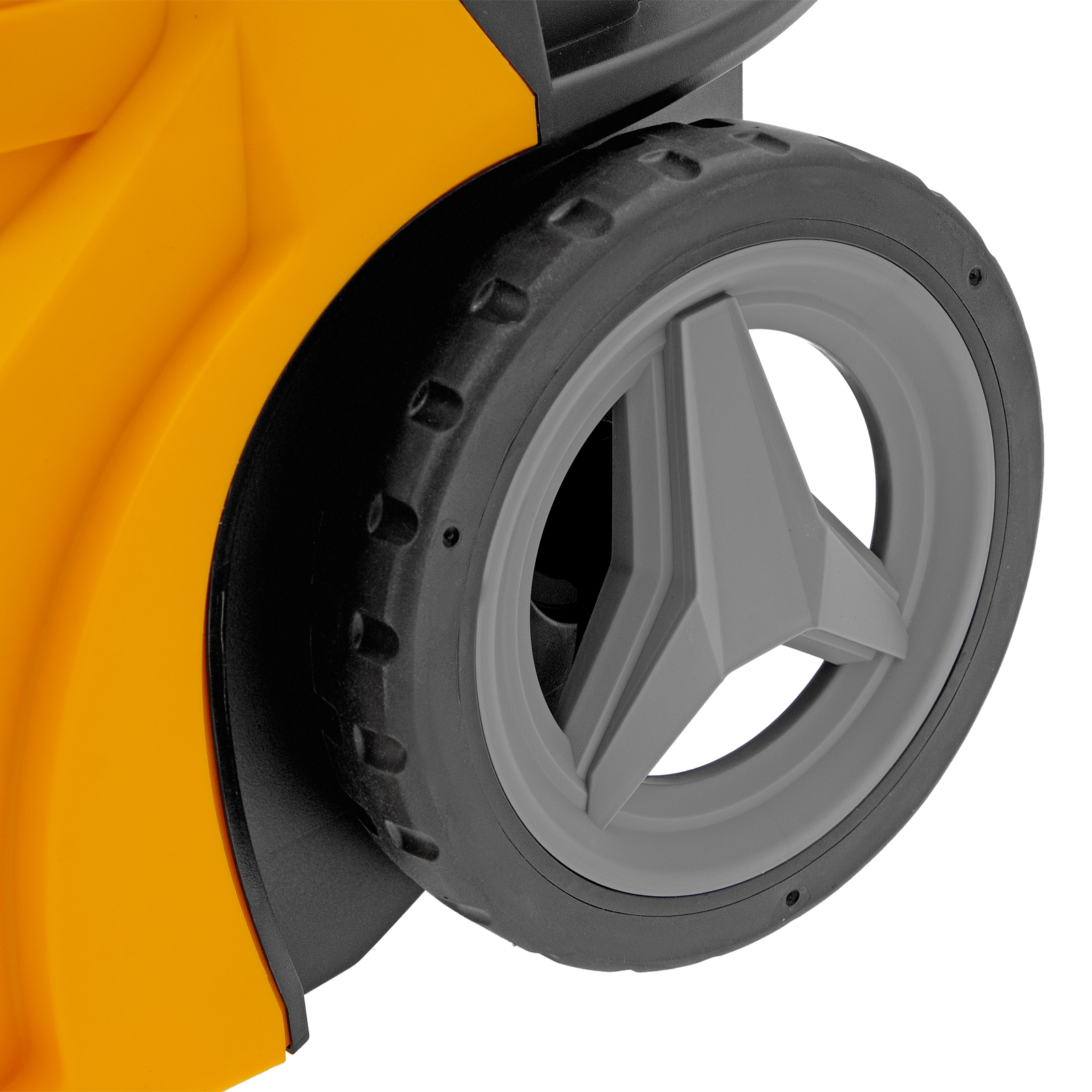 - Мобильность — колеса и телескопическая ручка позволяют легко перемещать мойку во время работы.