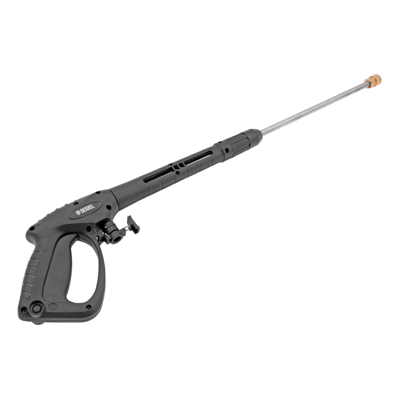 - Защита от случайного пуска — блокировка рычага пистолета позволяет включать автомойку только при полной готовности к работе.