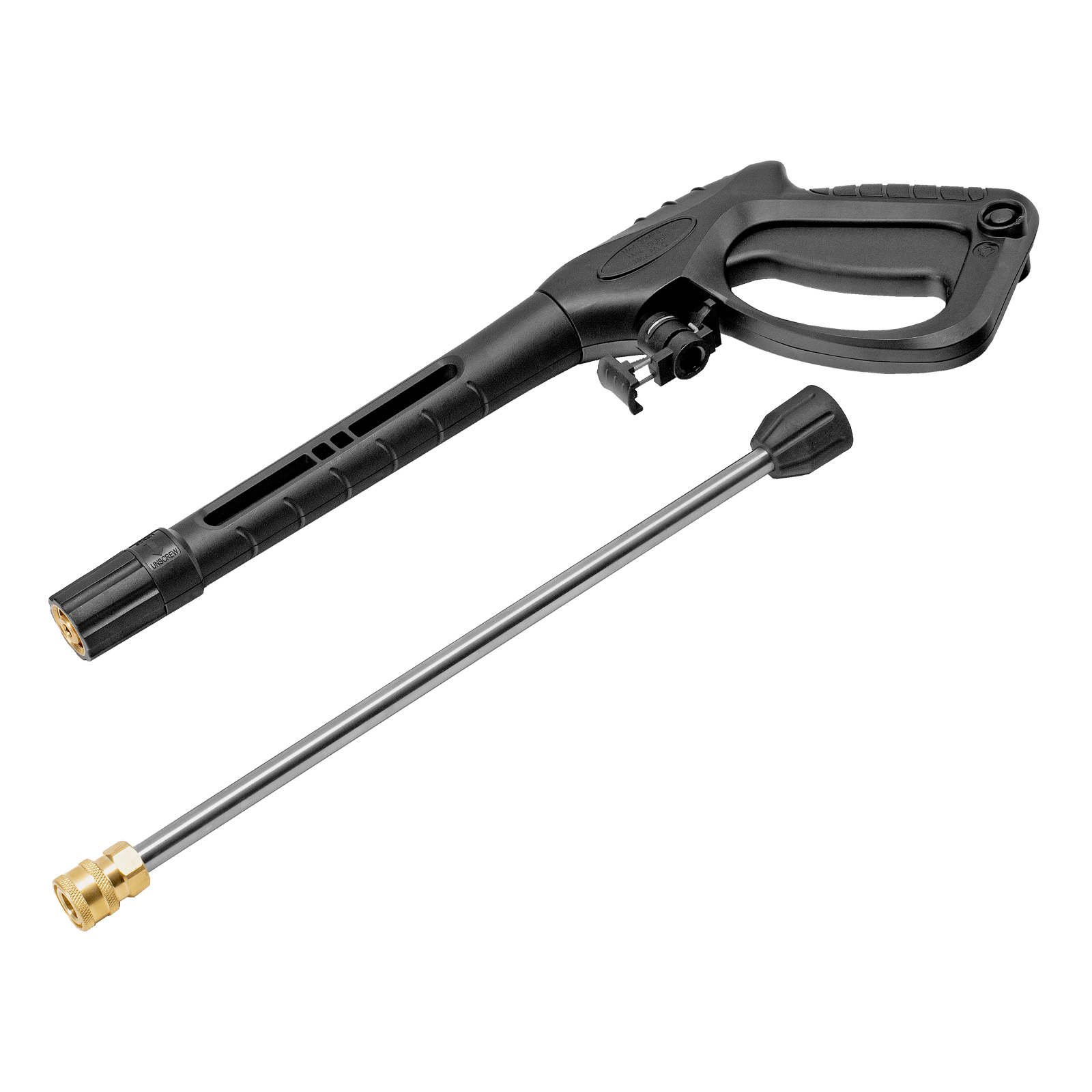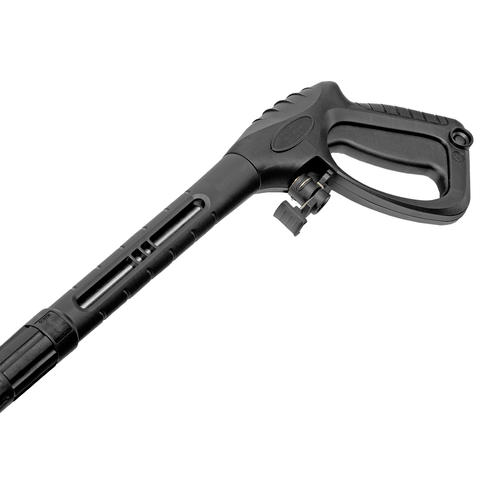 - Защита от случайного пуска — блокировка рычага пистолета позволяет включать автомойку только при полной готовности к работе.