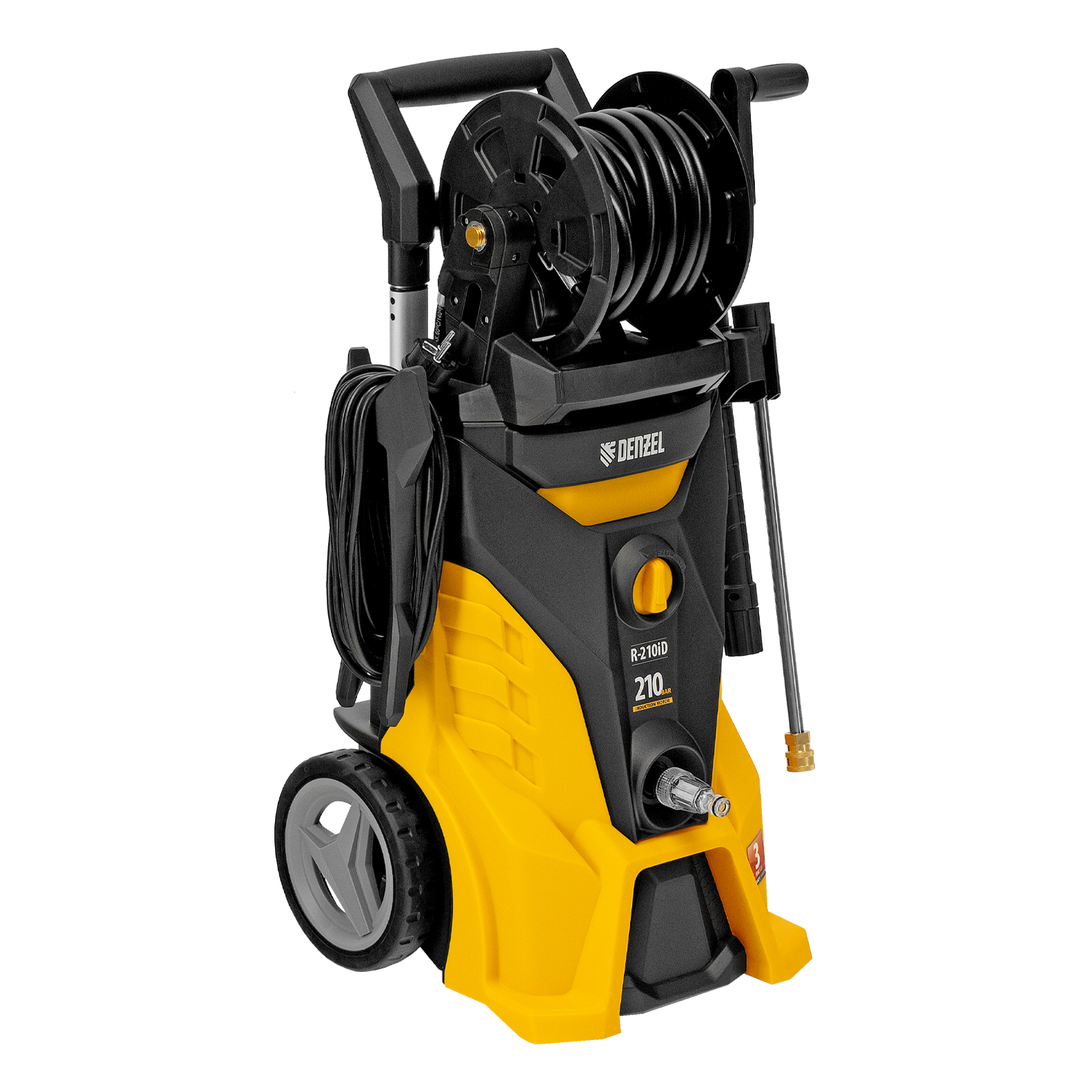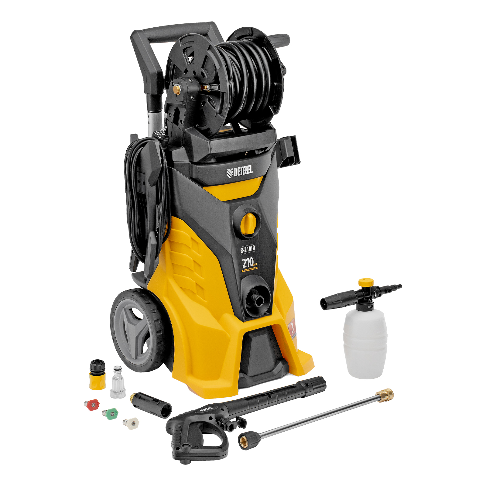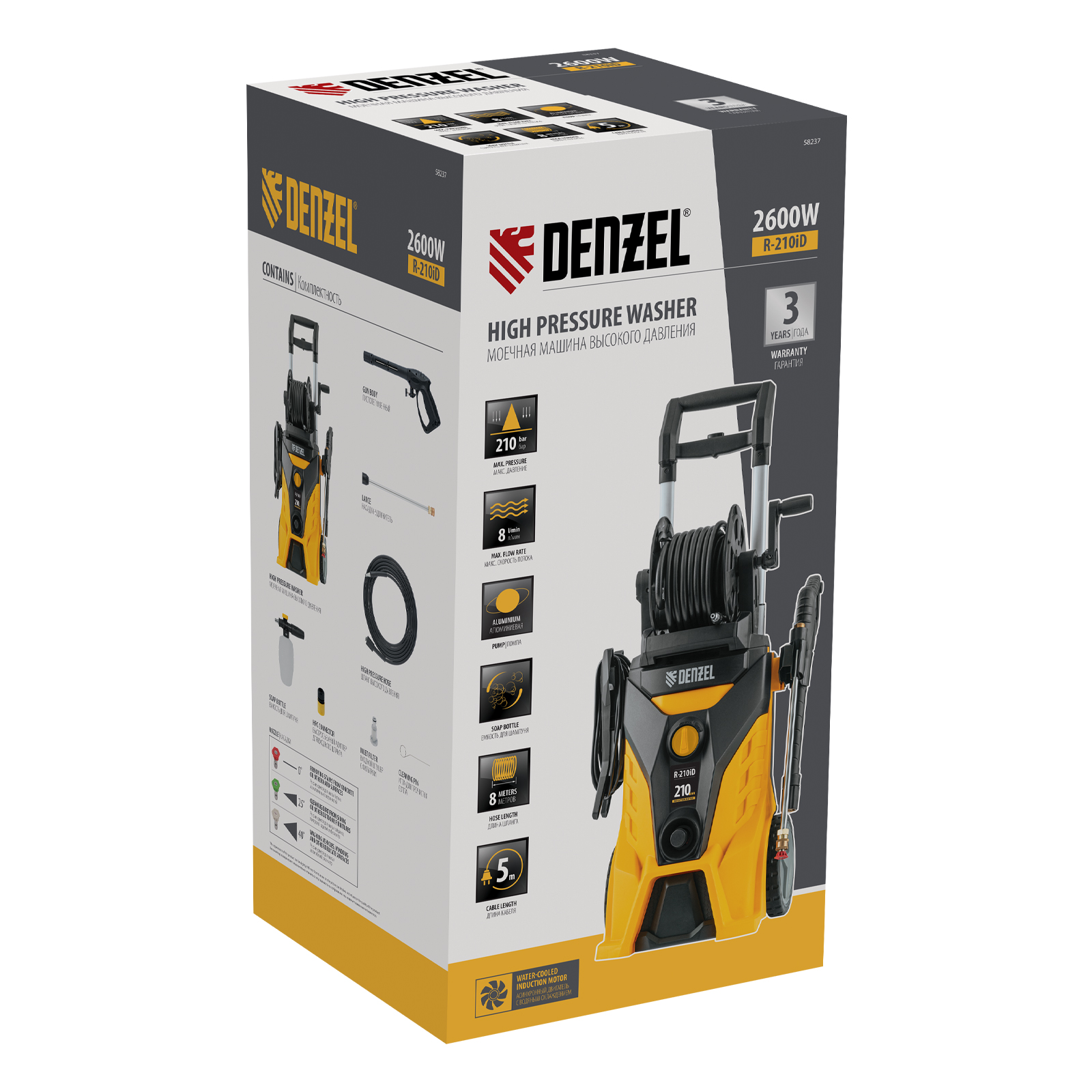 Моечная машина высокого давления R-210iD, 2600 Вт, 210 бар, 8.0 л/мин, асинхронный двигатель, барабан Denzel в Уфе
