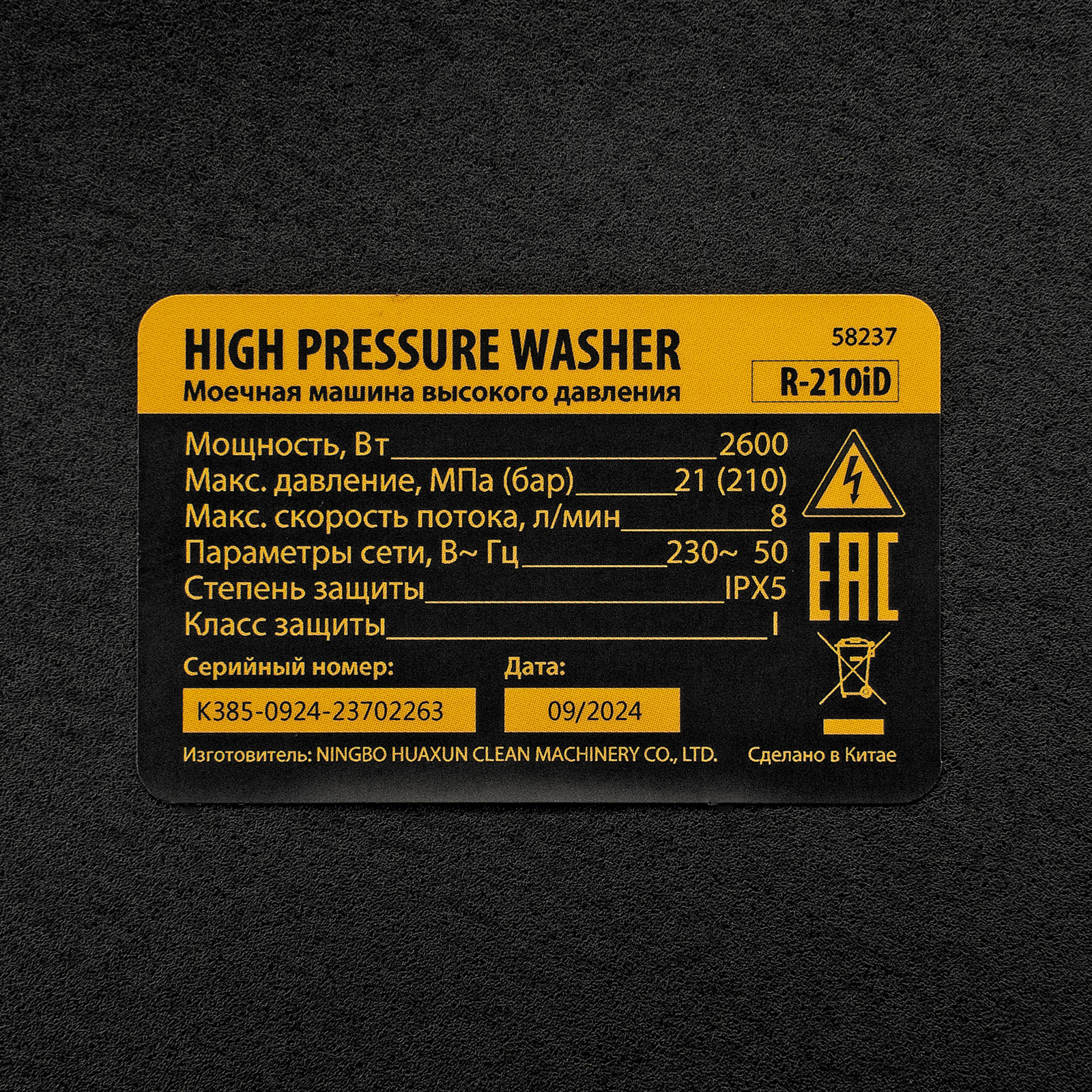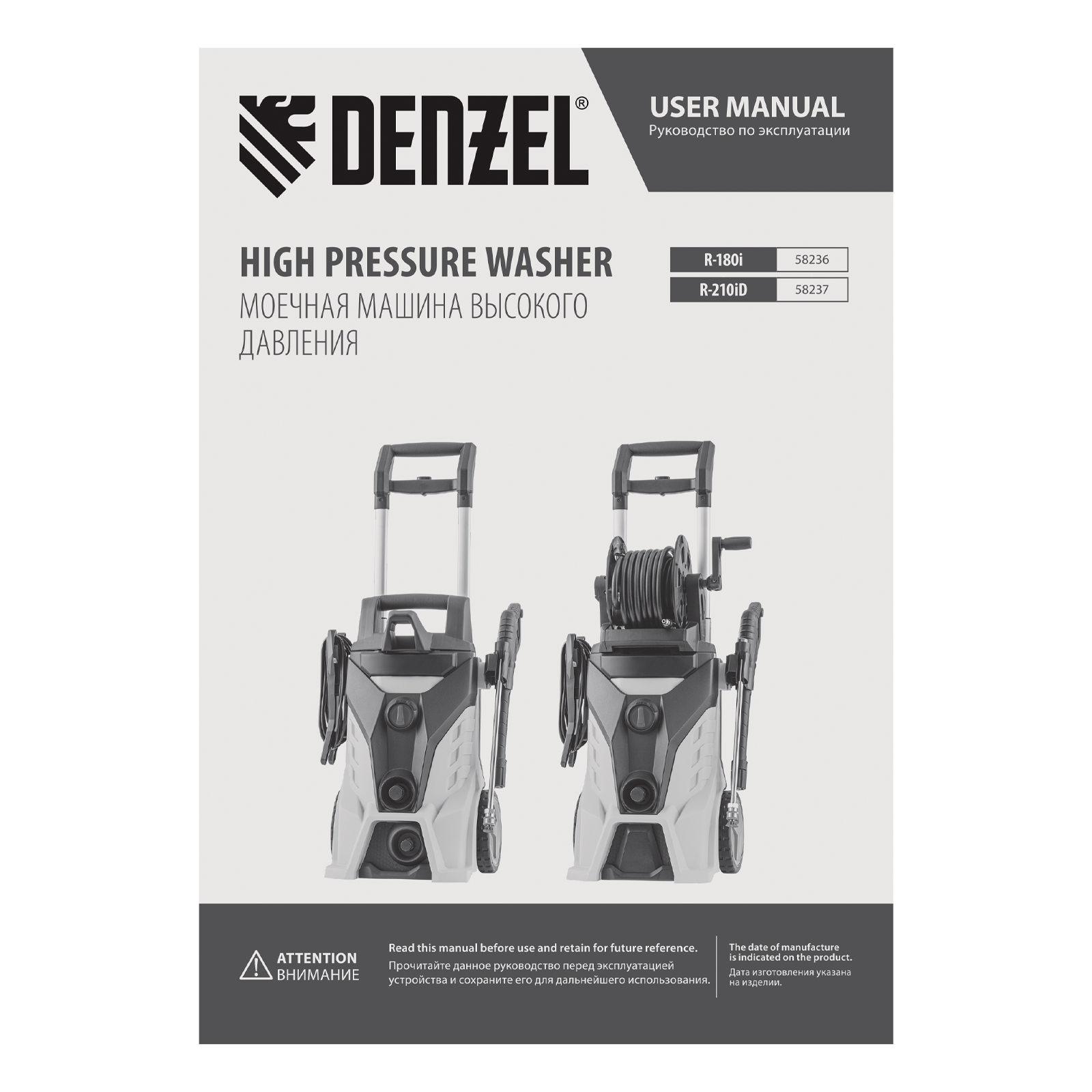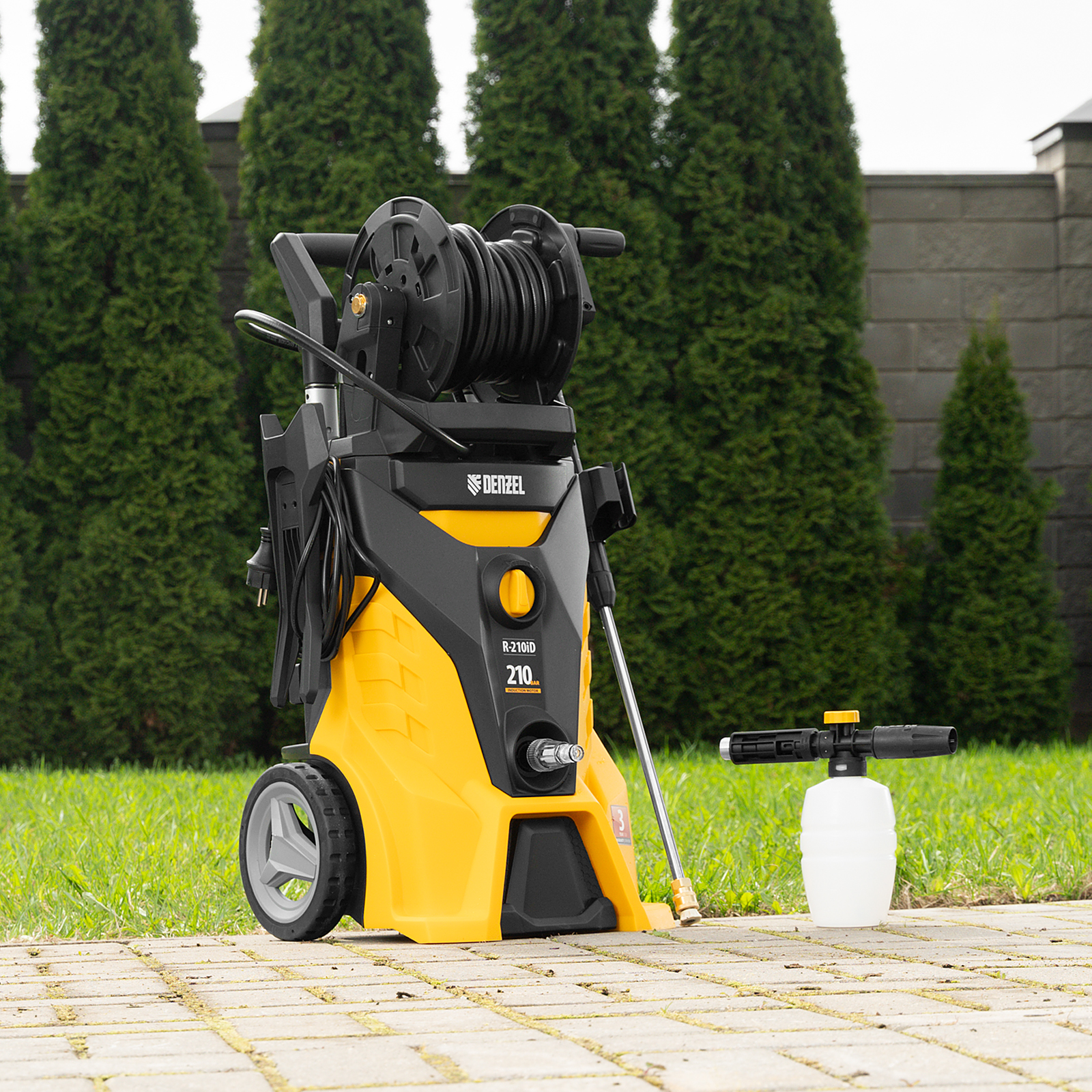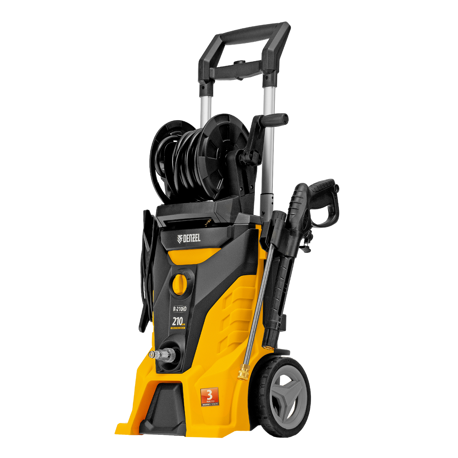 Моечная машина высокого давления R-210iD, 2600 Вт, 210 бар, 8.0 л/мин, асинхронный двигатель, барабан Denzel в Уфе