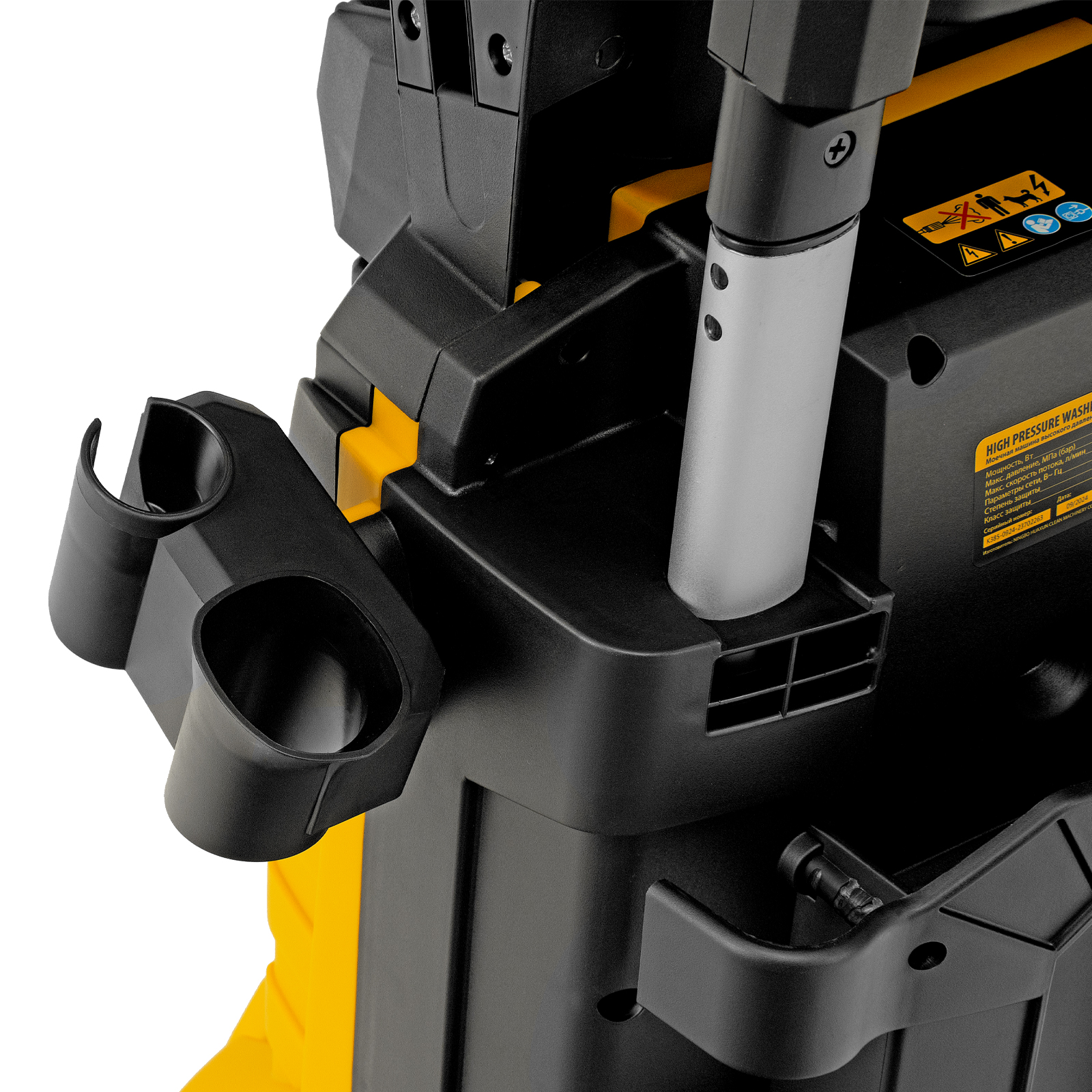- Удобное хранение — мойка оснащена держателем пистолета и кронштейном под кабель.