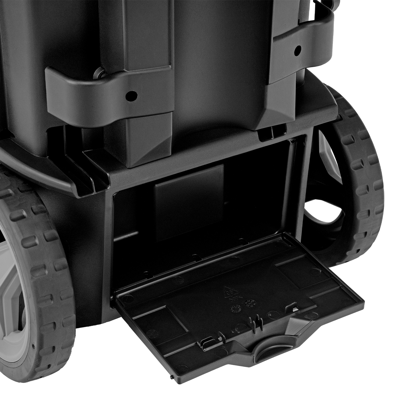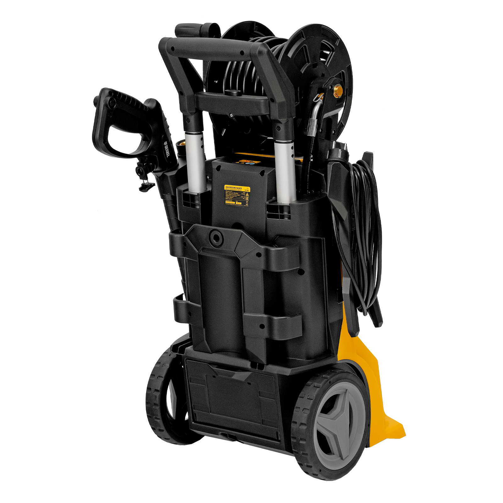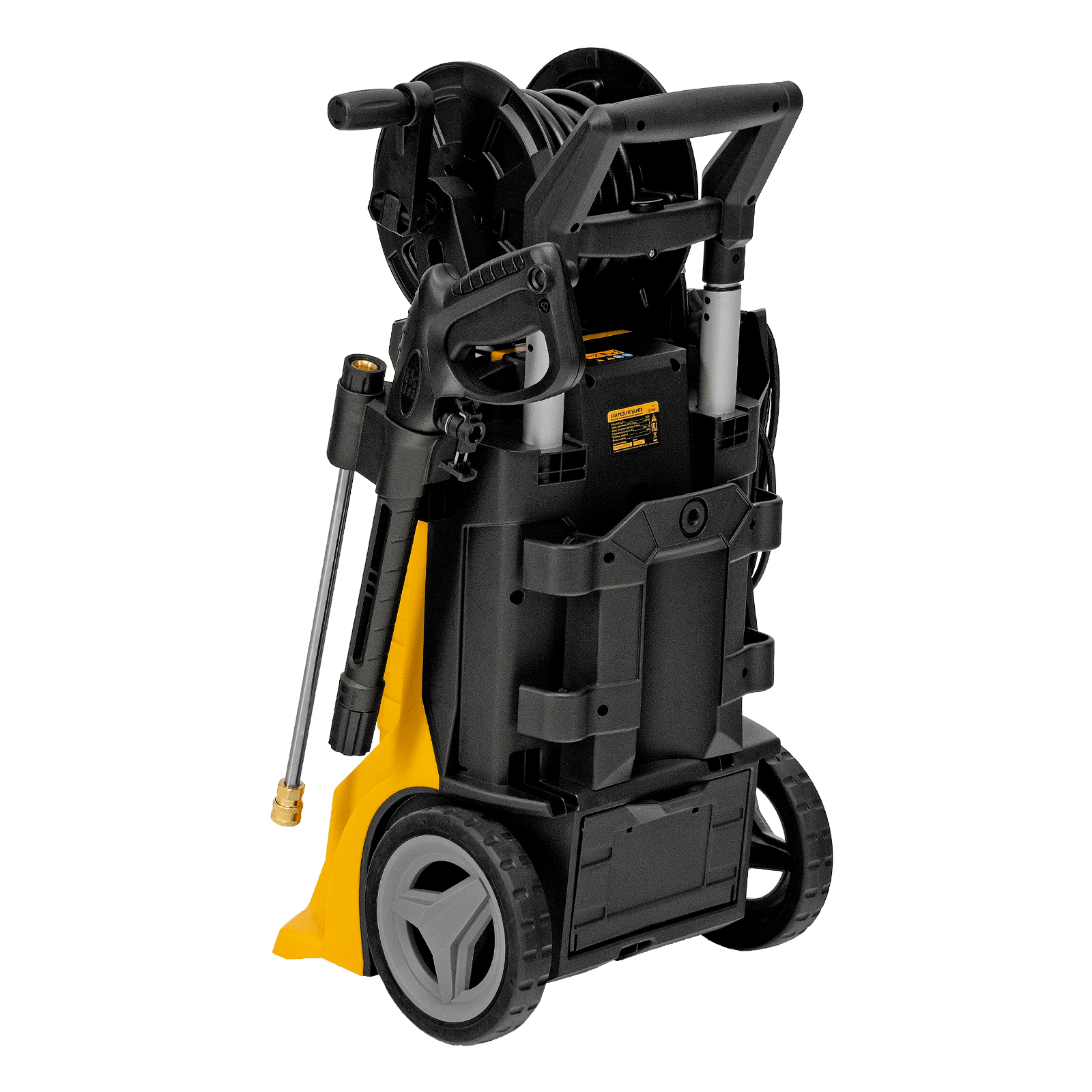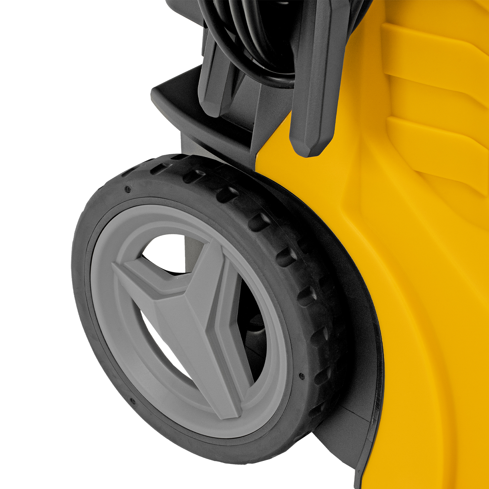 - Мобильность — колеса и телескопическая ручка позволяют легко перемещать мойку во время работы.
