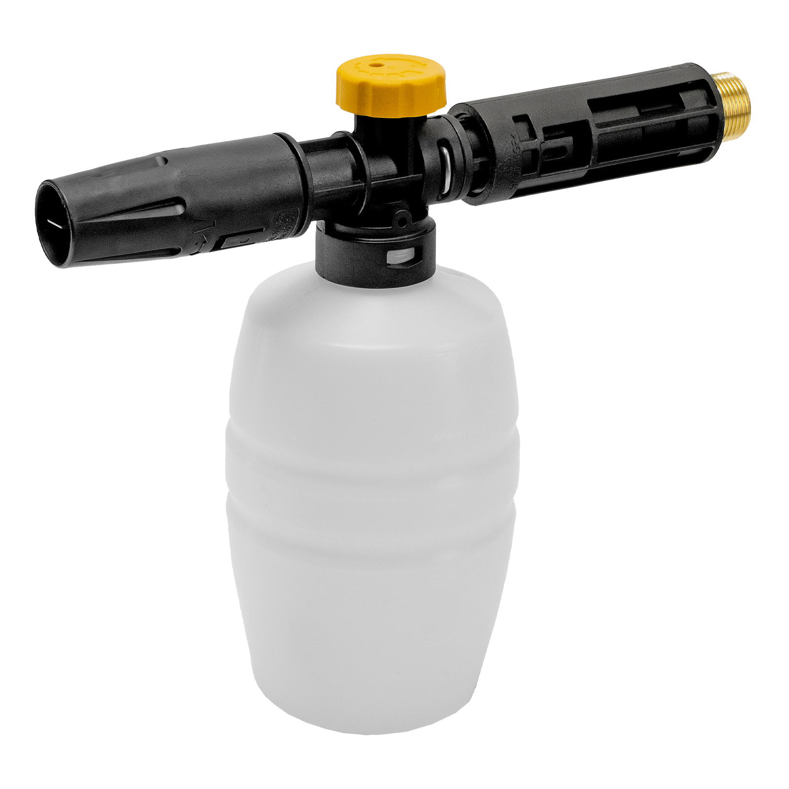 - Внешний пенокомплект — можно нанести на поверхности моющий раствор для лучшей борьбы с загрязнениями.