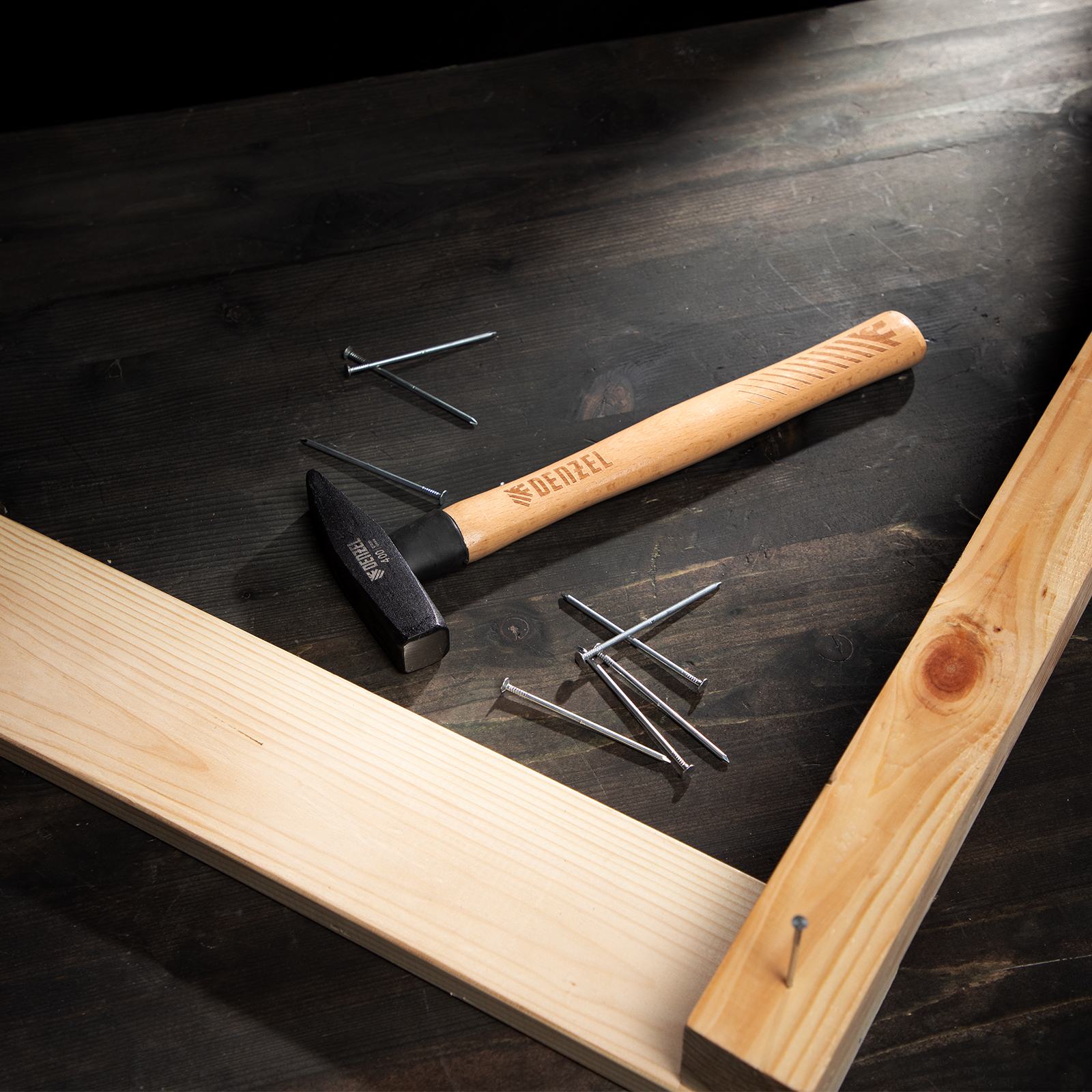 Слесарный молоток Denzel 10428 с квадратным кованым бойком весом 400 г предназначен для забивания гвоздей и другого крепежа и для работы с металлическими заготовками. Инструмент применяется во время слесарных или столярных работ в быту, также будет полезен профессионалам.