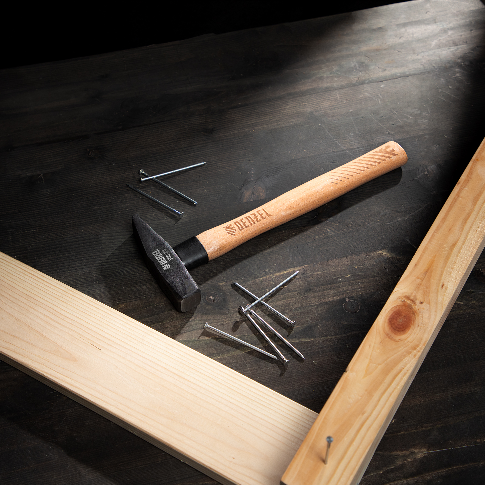 Слесарный молоток Denzel 10429 с квадратным кованым бойком весом 500 г предназначен для забивания гвоздей и другого крепежа и для работы с металлическими заготовками. Инструмент применяется во время слесарных или столярных работ в быту, также будет полезен профессионалам.