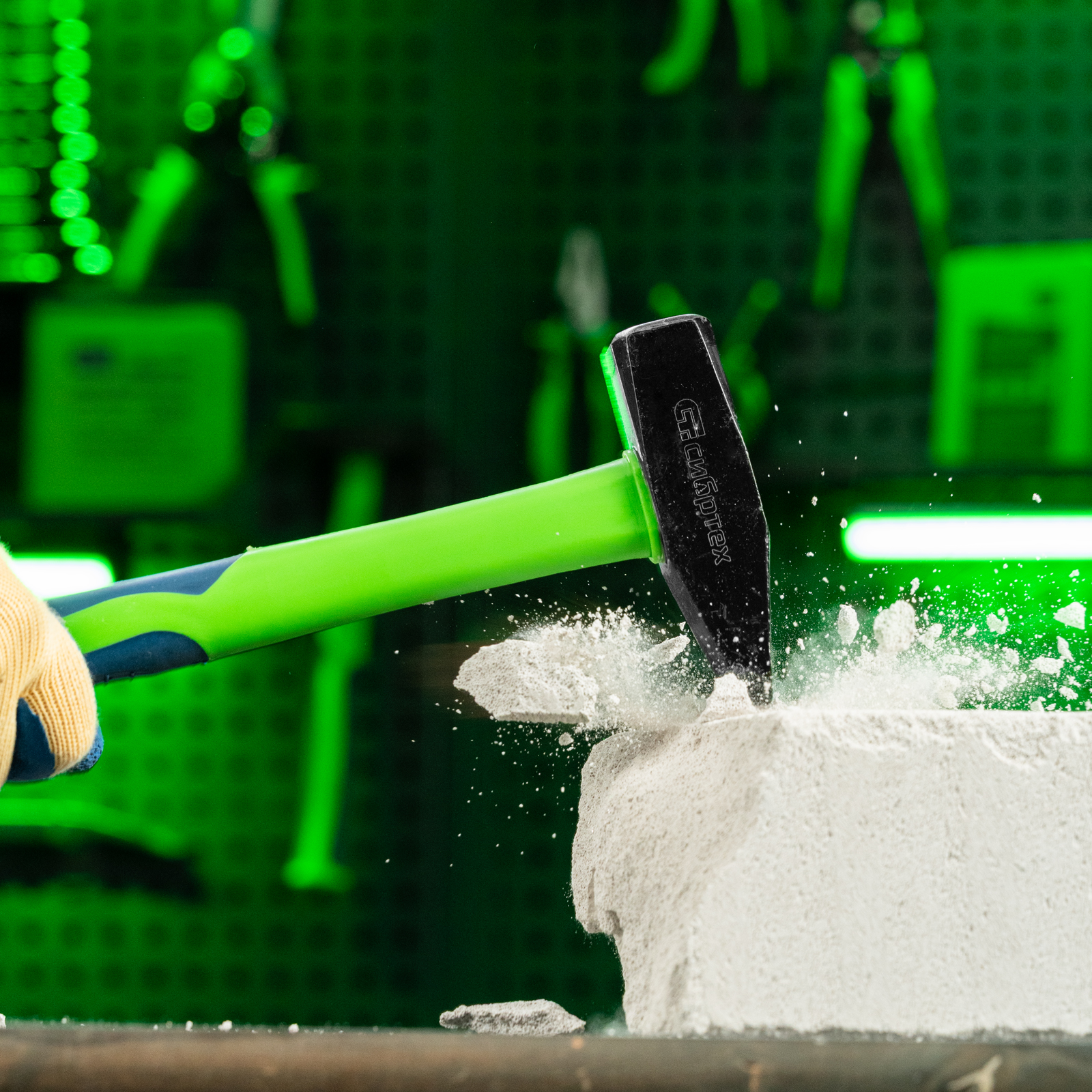 - Комфортная работа — легкая фибергласовая рукоятка поглощает колебания от ударов, ее прорезиненная поверхность не скользит в руке.