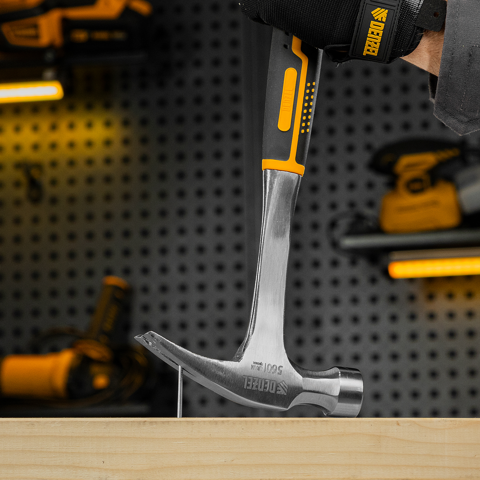 Цельнометаллический молоток-гвоздодер Denzel 10424 с головкой весом 560 г и двухкомпонентной рукояткой предназначен для забивания и извлечения гвоздей. Рекомендован как для домашнего, так и для профессионального применения, пригодится в слесарной мастерской, на даче, в гараже.
