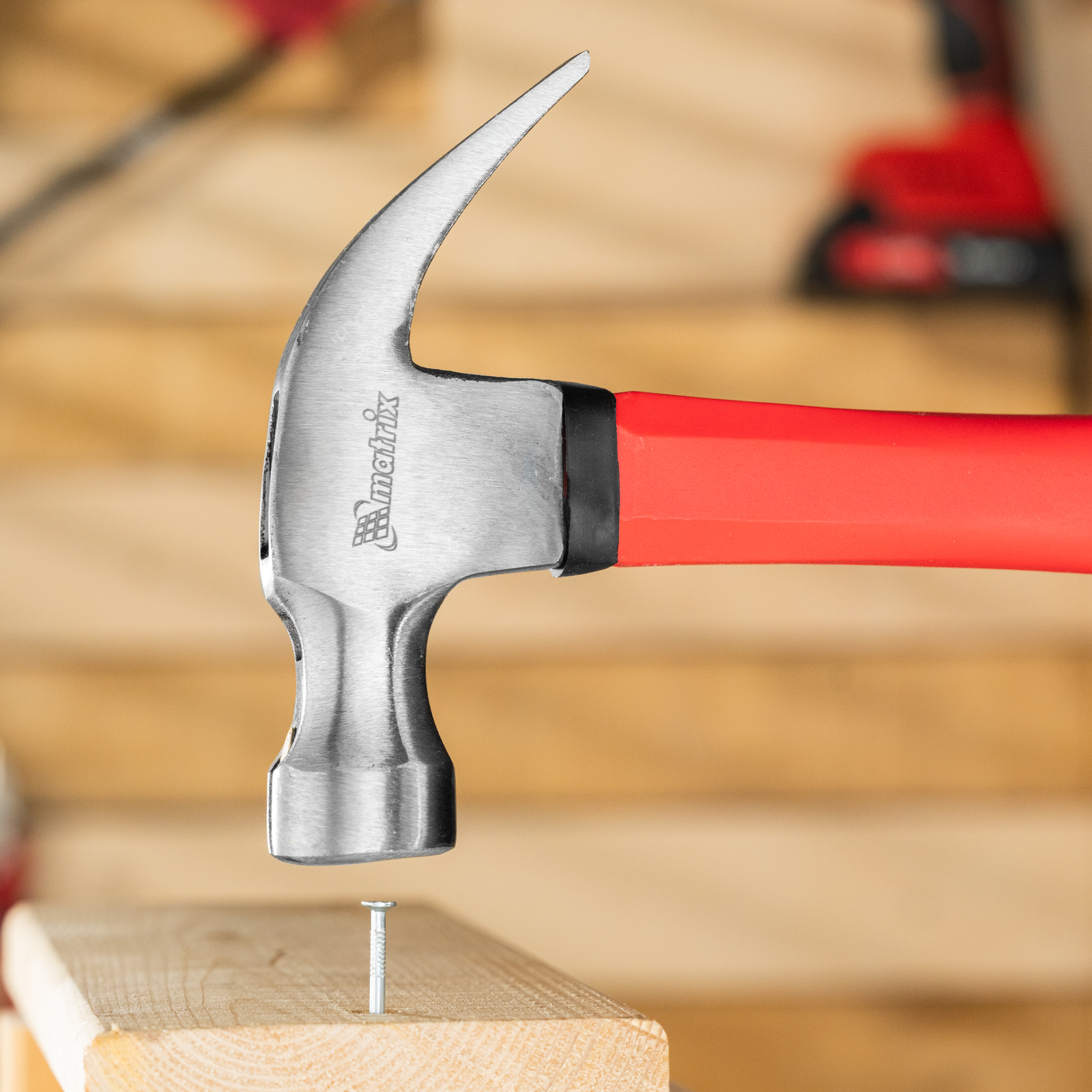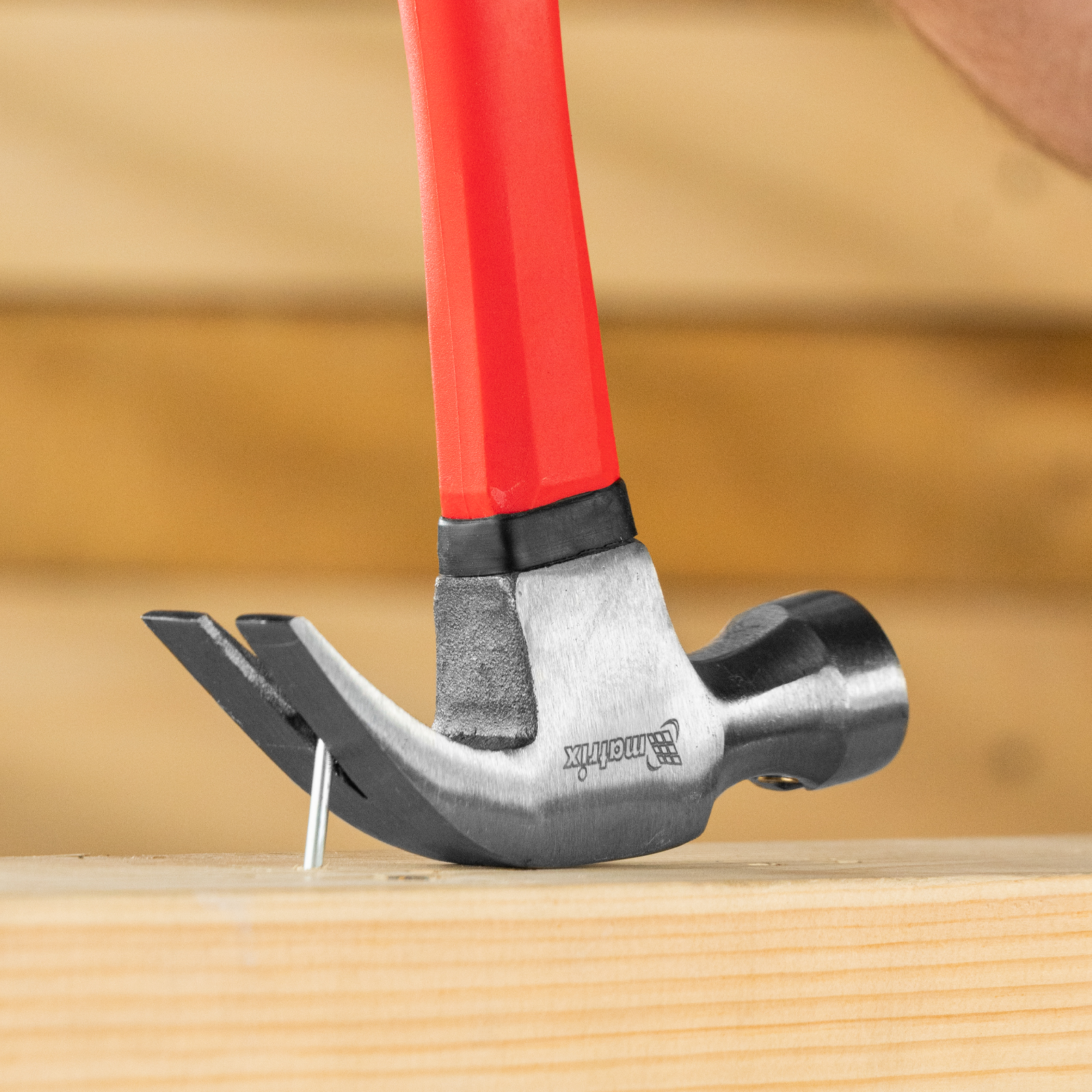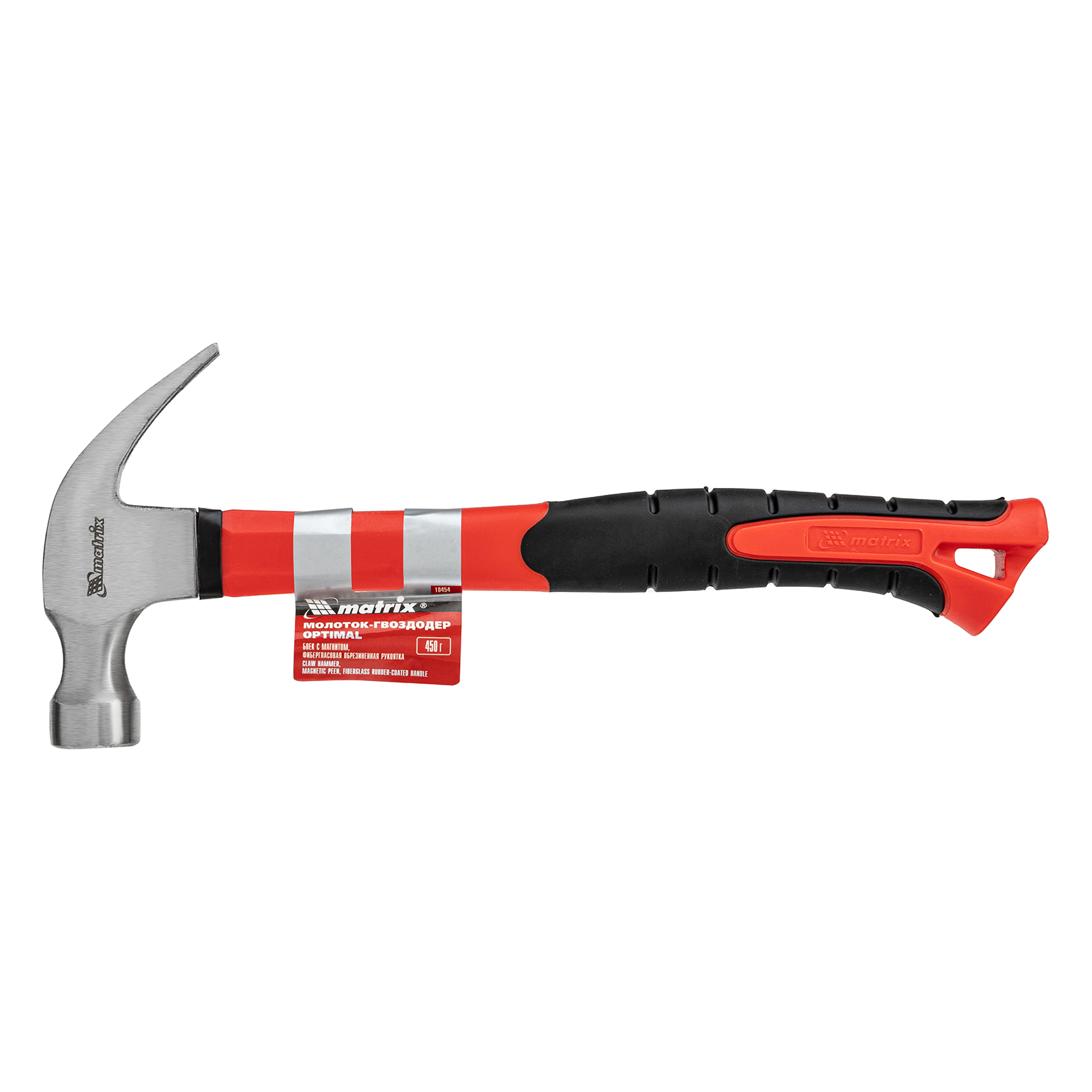 Молоток-гвоздодер optimal, 450 г, боек c магнитом, фибергласовая обрезиненная рукоятка Matrix в Уфе