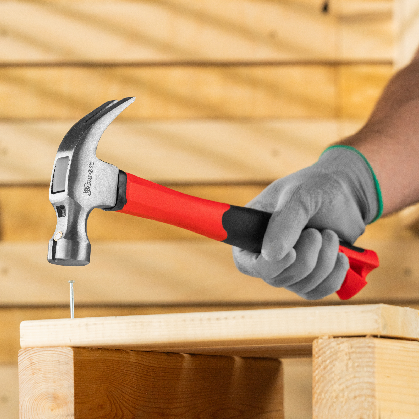 - Надежная конструкция — рукоятка вклеена в головку эпоксидным клеем и не выскочит даже при работе с большим усилием, удлиненная «юбка» в месте всада защищает рукоятку от повреждений в случае промаха по гвоздю.