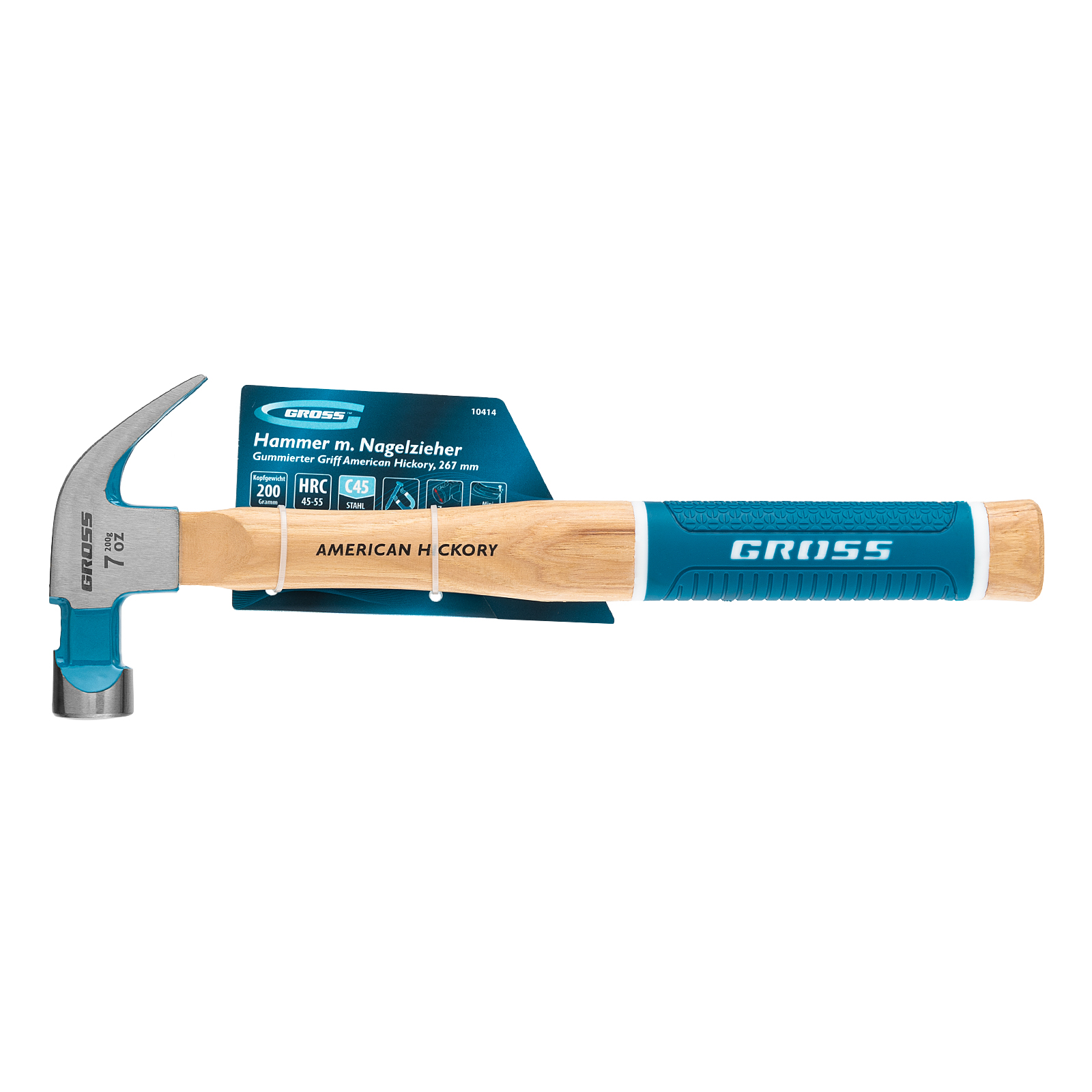 Молоток-гвоздодер, 200 г, угол 45, магнит, обрезиненная рукоятка American hickory GROSS в Уфе