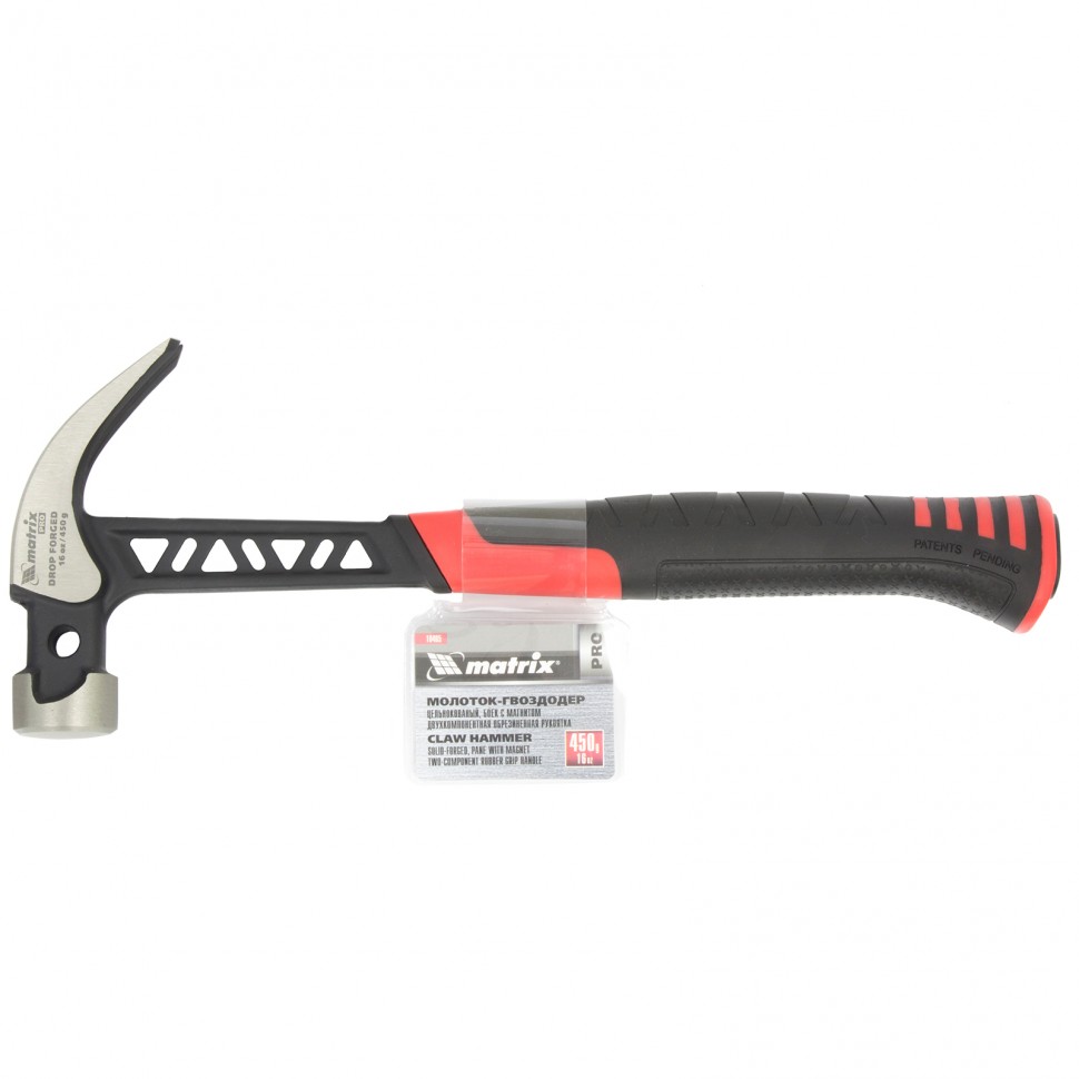 Молоток-гвоздодер, 450 г, цельнокованый, боек с магнитом, двухкомпонентная обрезиненная рукоятка Matrix Pro в Уфе
