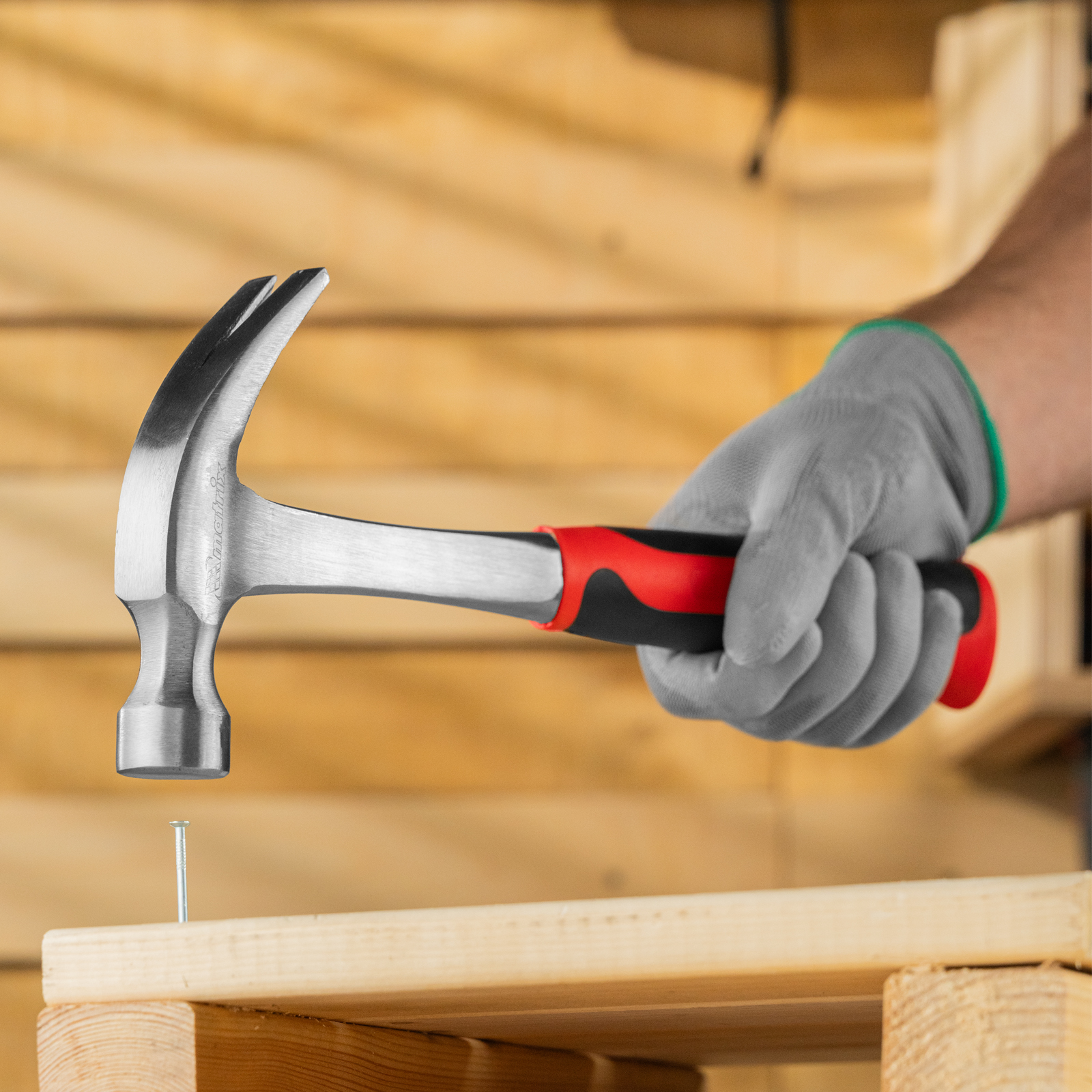 Цельнометаллический молоток-гвоздодер Matrix 10460 с головкой весом 450 г и двухкомпонентной рукояткой — ударный инструмент с функцией извлечения гвоздей. С одной стороны имеется круглый боек для нанесения ударов, а с другой — плоский изогнутый носок с клиновидной прорезью, позволяющей подцепить шляпку гвоздя. Инструмент используется в профессиональной сфере, а также подходит для решения бытовых задач.