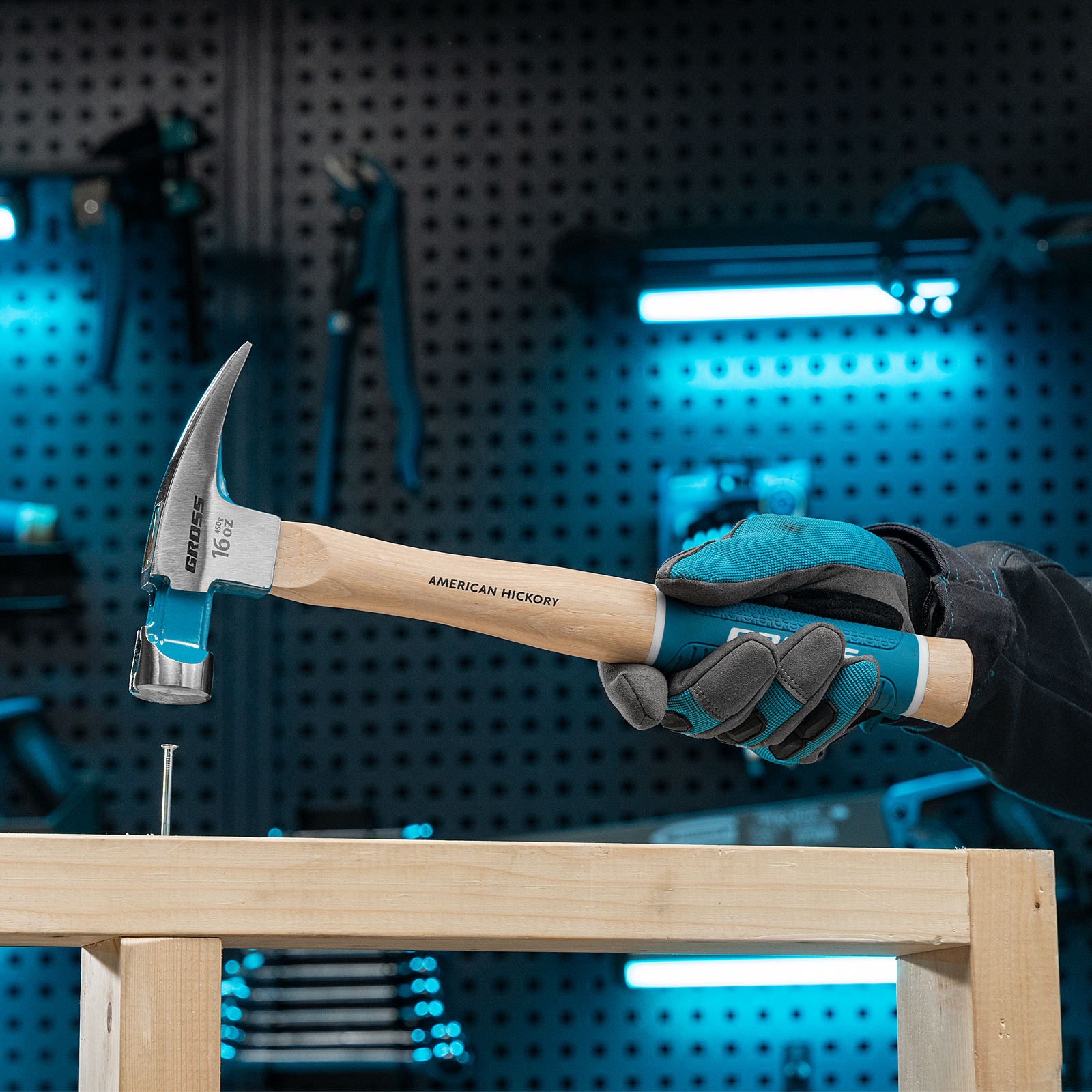 Молоток-гвоздодер, 450 г, угол 75, магнит, обрезиненная рукоятка American hickory GROSS в Уфе