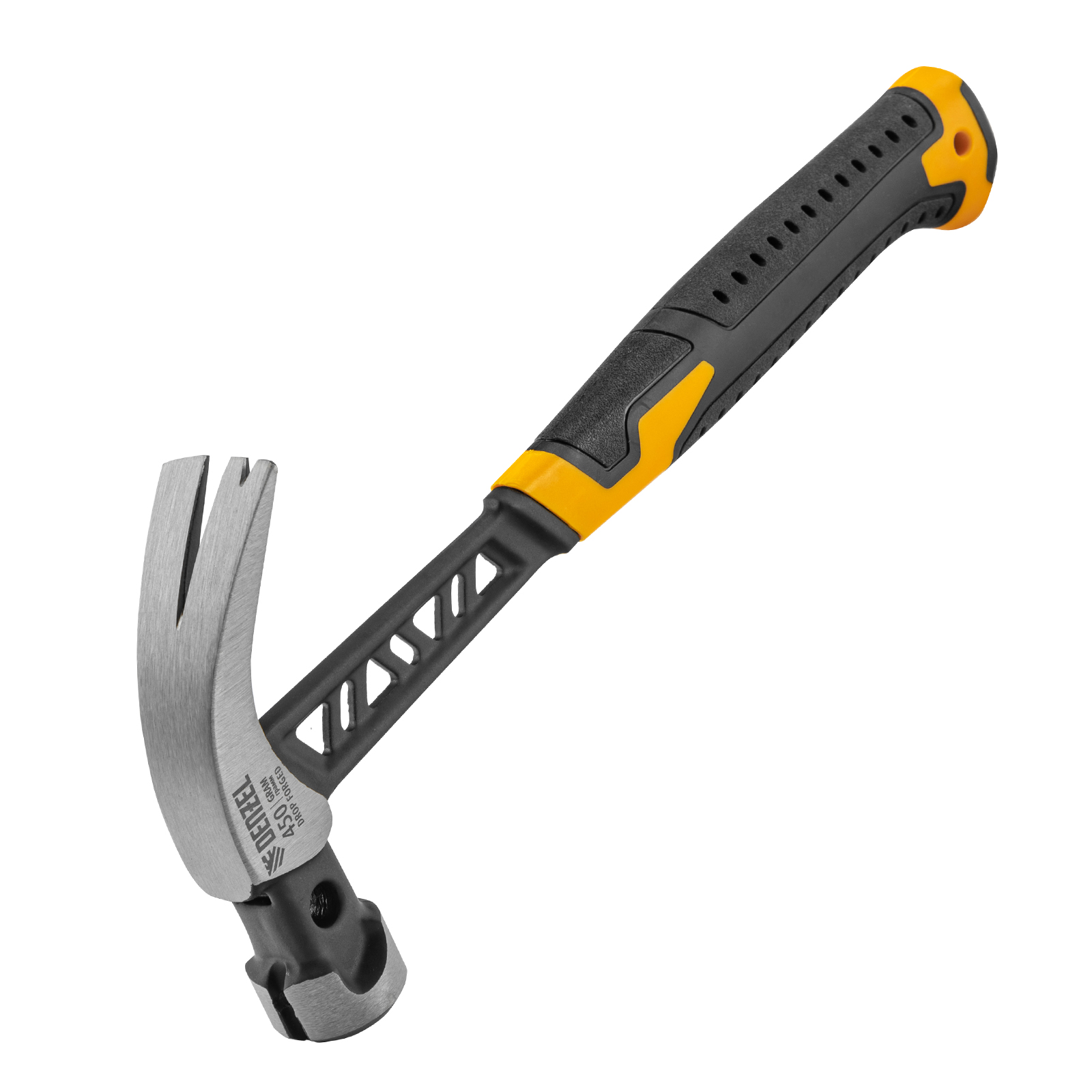 Молоток-гвоздодер 450 г, цельнокованый,боек с магнитом, двухкомп. обрезин. рук-ка Denzel в Уфе