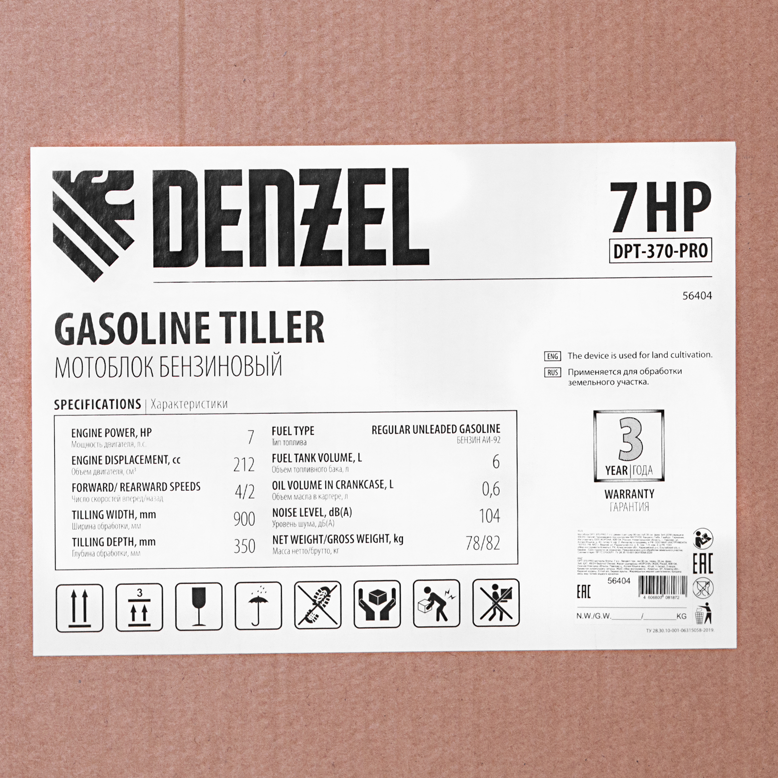 Мотоблок DPT-370-PRO, 7 л.с, ременное сцепление, ширина 90 см, глубина 35 см, фрез 3 х 4, ШОМ, передачи 4В/2Н Denzel в Уфе