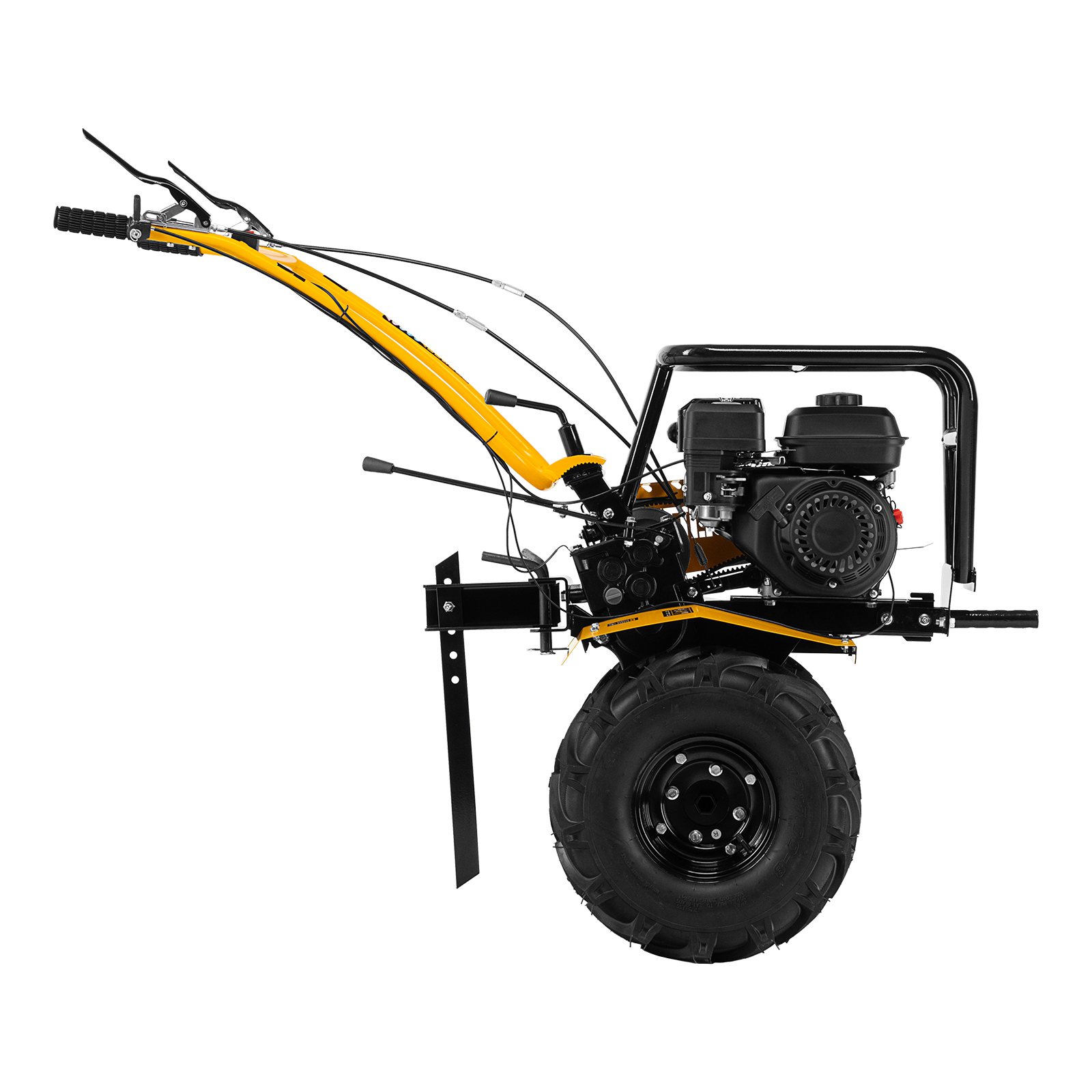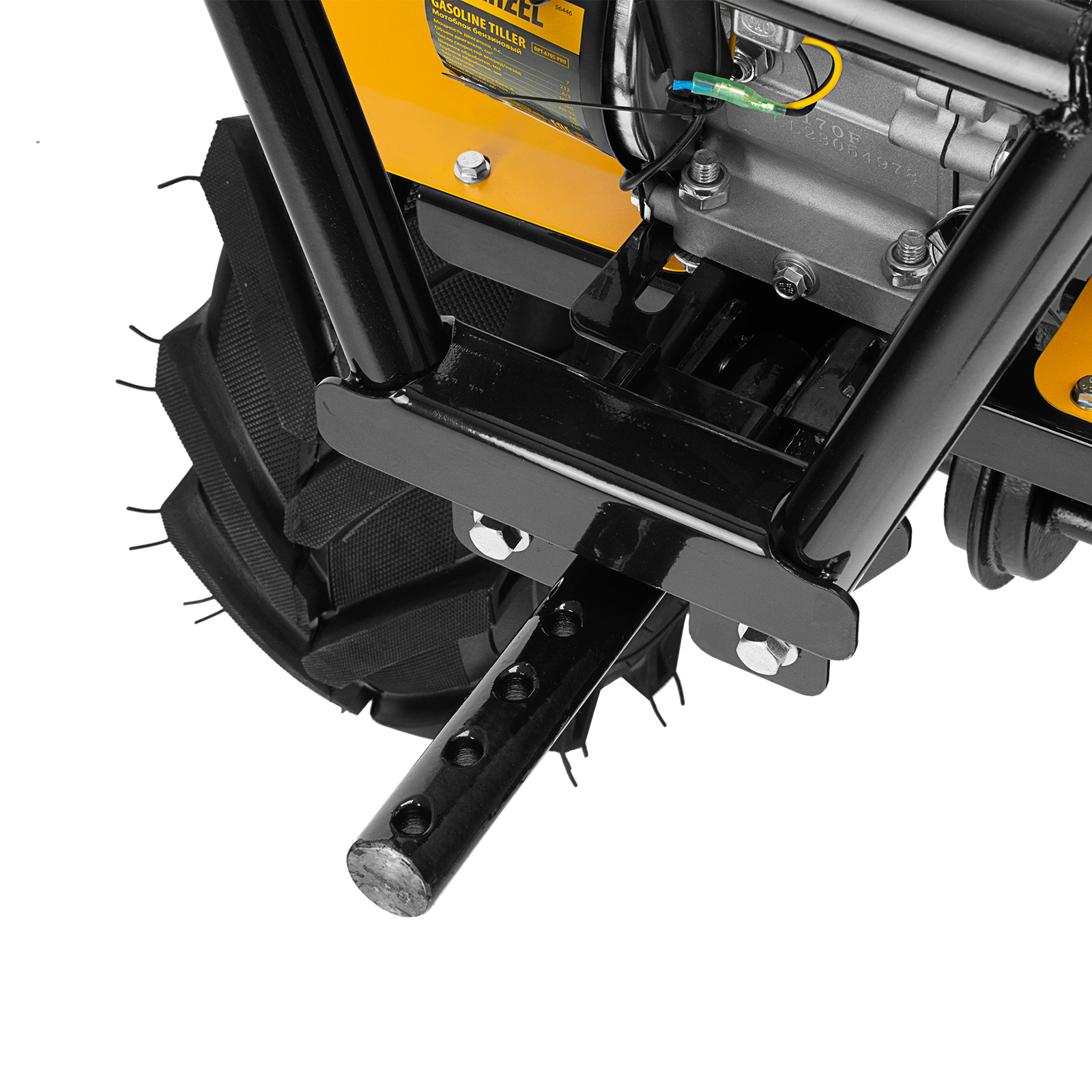 - Усиленная рама — ключевые узлы надежно защищены, мотоблок удобно транспортировать.