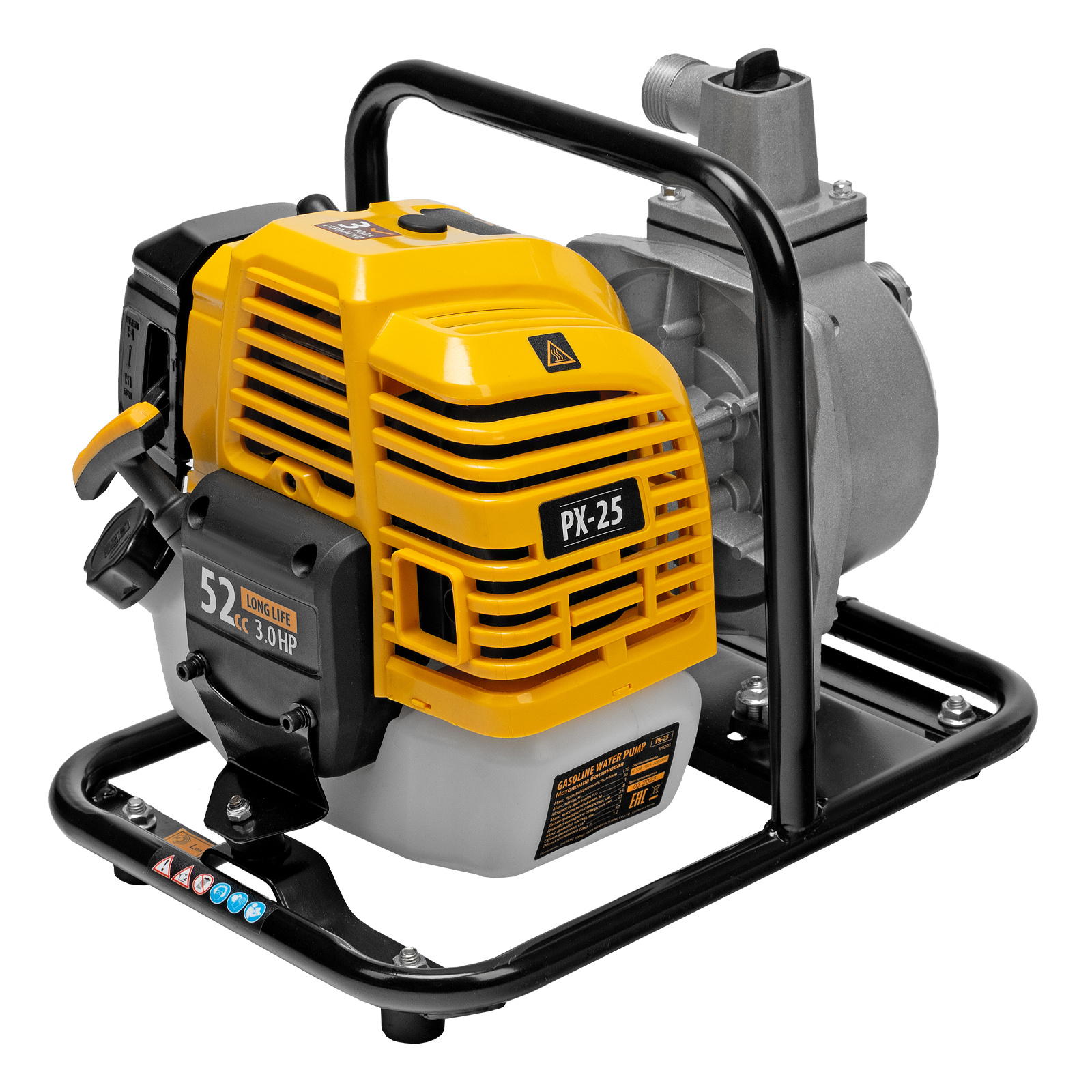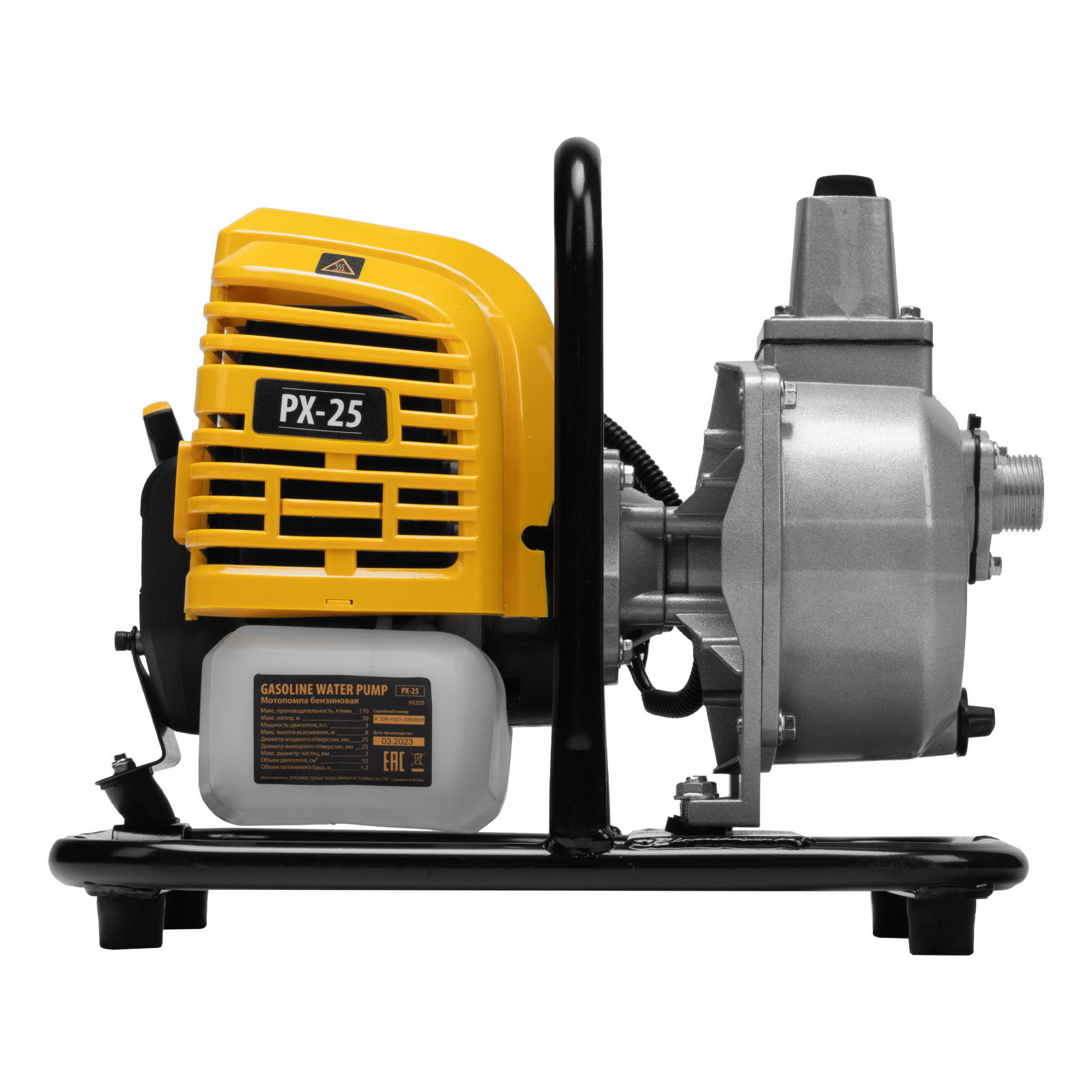 Бензиновая мотопомпа Denzel PX-25 99205 с 2-тактным двигателем мощностью 52 см3 и производительностью 170 л/мин обеспечивает глубину всасывания 8 м и напор 30 м. Предназначена для перекачивания чистой воды, используется для осушения затопленных подвалов и нижних этажей зданий, бассейнов. Подходит также для организации системы орошения на загородном участке.