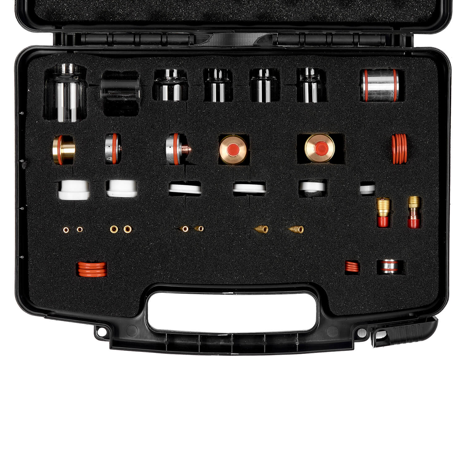 Набор состоит из прозрачных сопел CRYSTAL (Pyrex), которые изготовлены из термостойкого кварцевого стекла, где толщина стенки варьируется от 2,0 до 2,5 мм в зависимости от номера сопла. Прозрачное сопло улучшает обзор области сварки. Сопло и комплектующие способствуют формированию равномерного потока защитного газа и защите сварочной ванны.