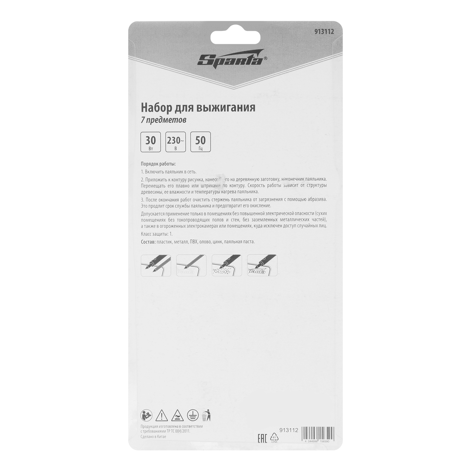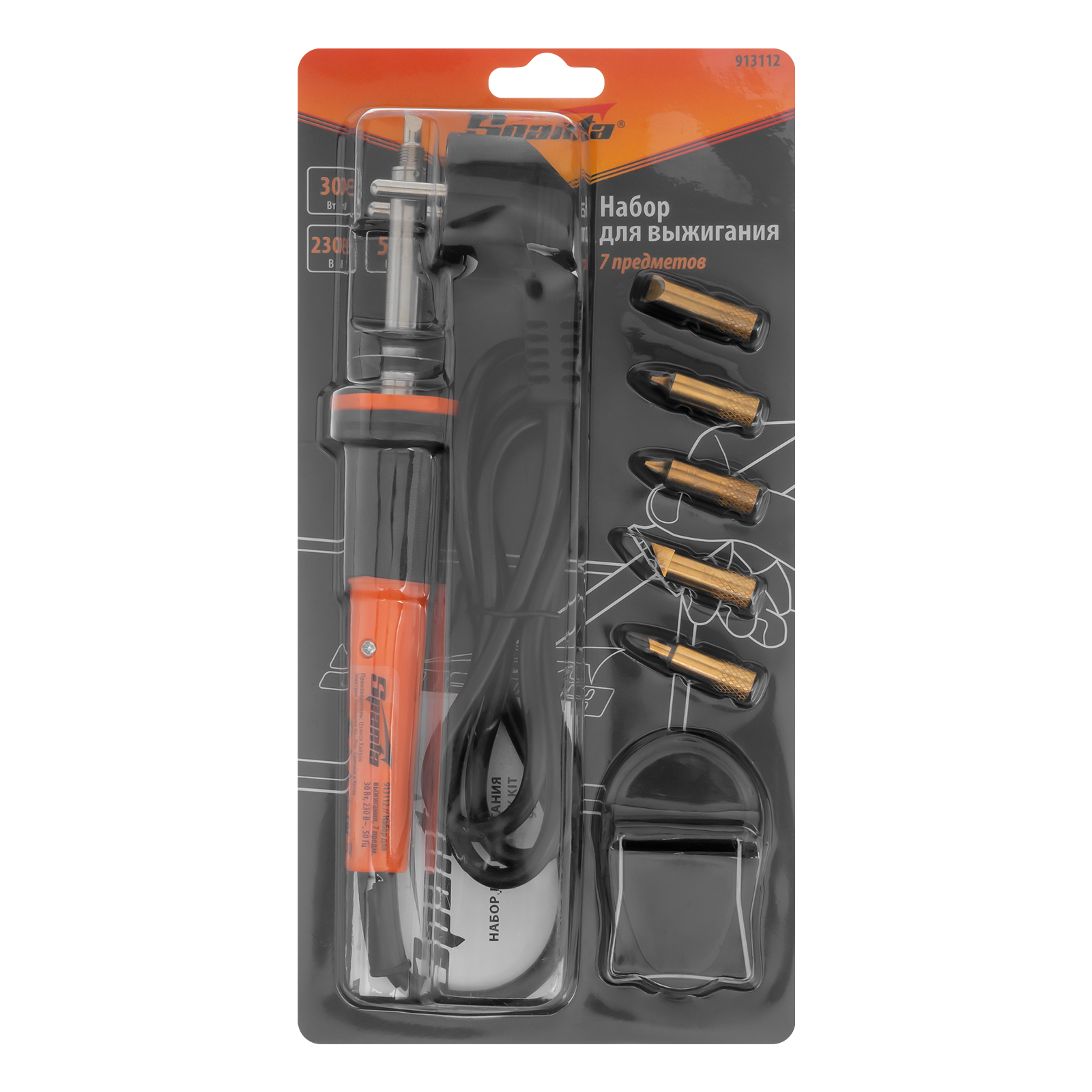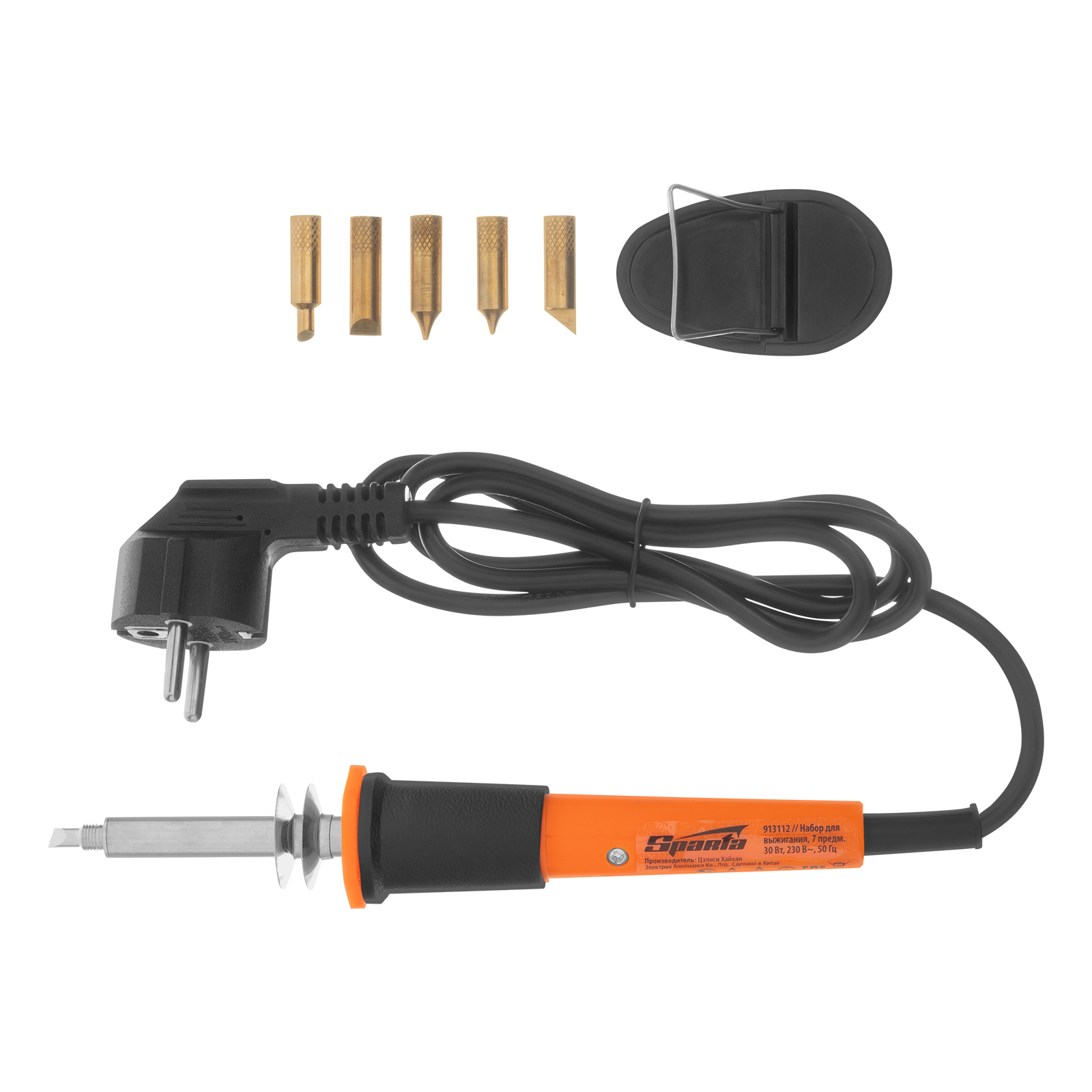 Набор для выжигания, 7 предметов: паяльник 30 Вт, подставка, жала сменные Sparta в Уфе