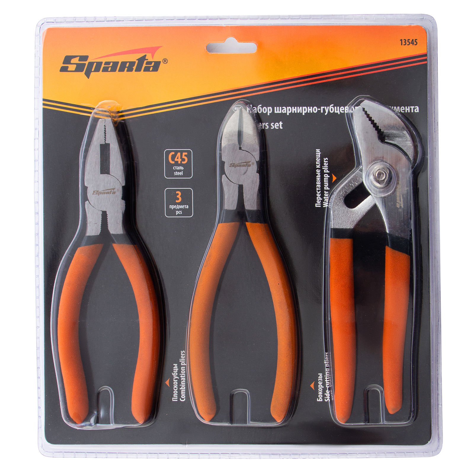 Набор губцевого инструмента №2, 3 предмета: плоскогубцы, бокорезы, клещи переставные Sparta в Уфе
