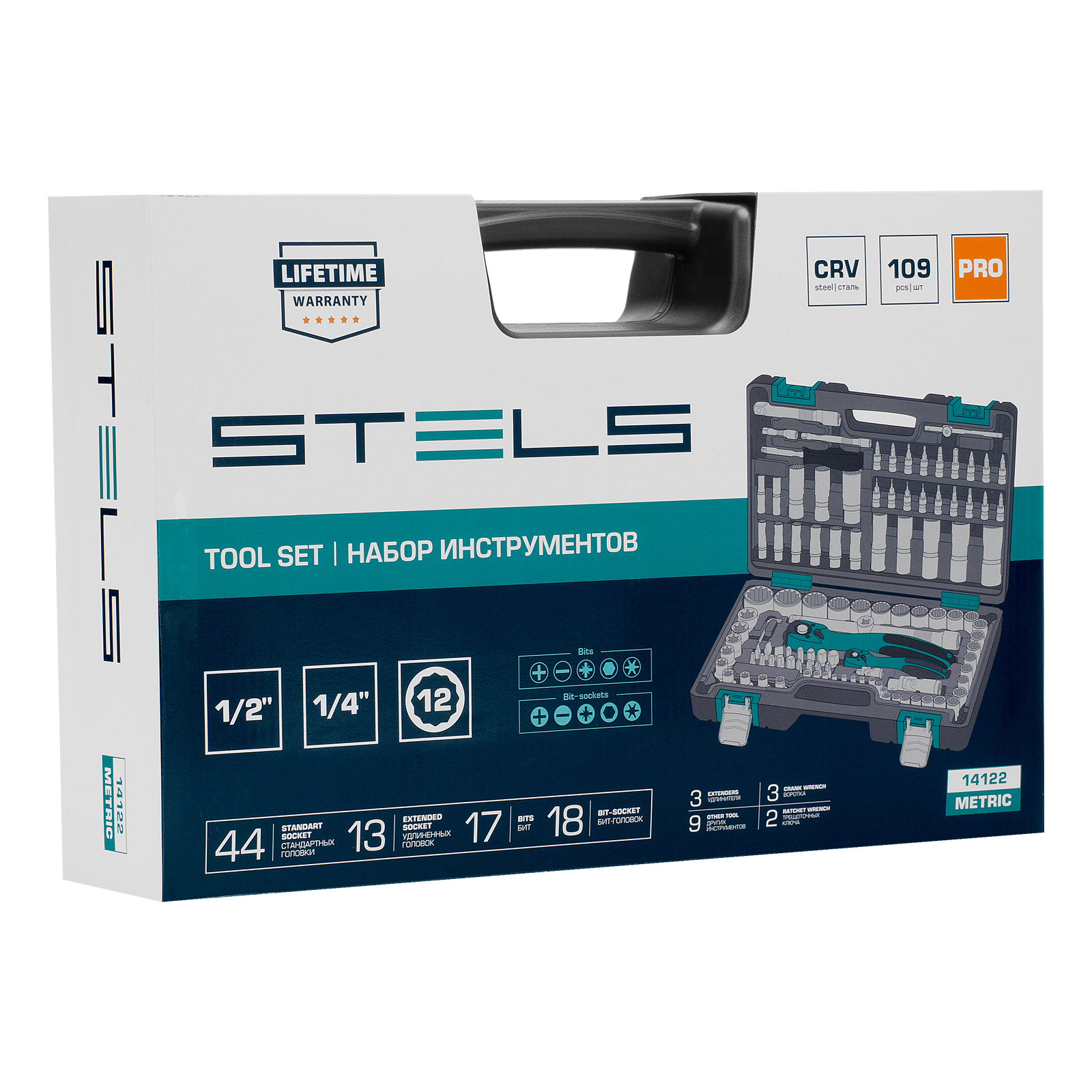 Набор инструментов 1/2", 1/4", CrV, 12 гранные головки, пластиковый кейс, 109 предмета Stels в Уфе