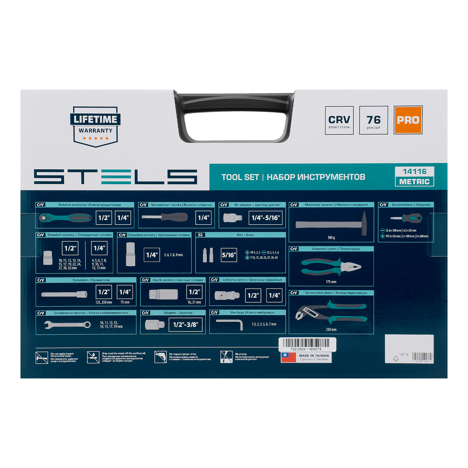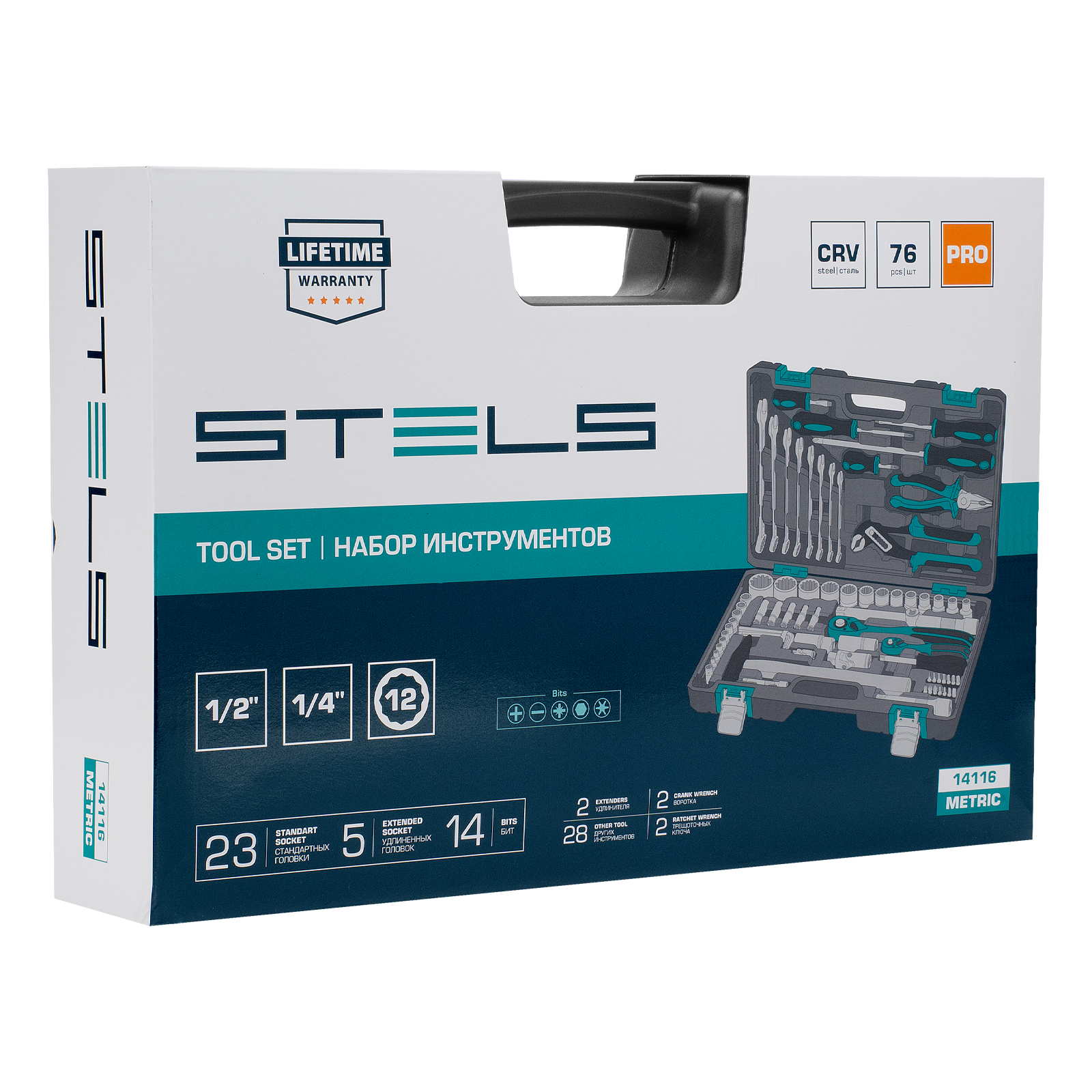 Набор инструментов, 1/2", 1/4", CrV, 12 гранные головки, пластиковый кейс, 76 предметов Stels в Уфе