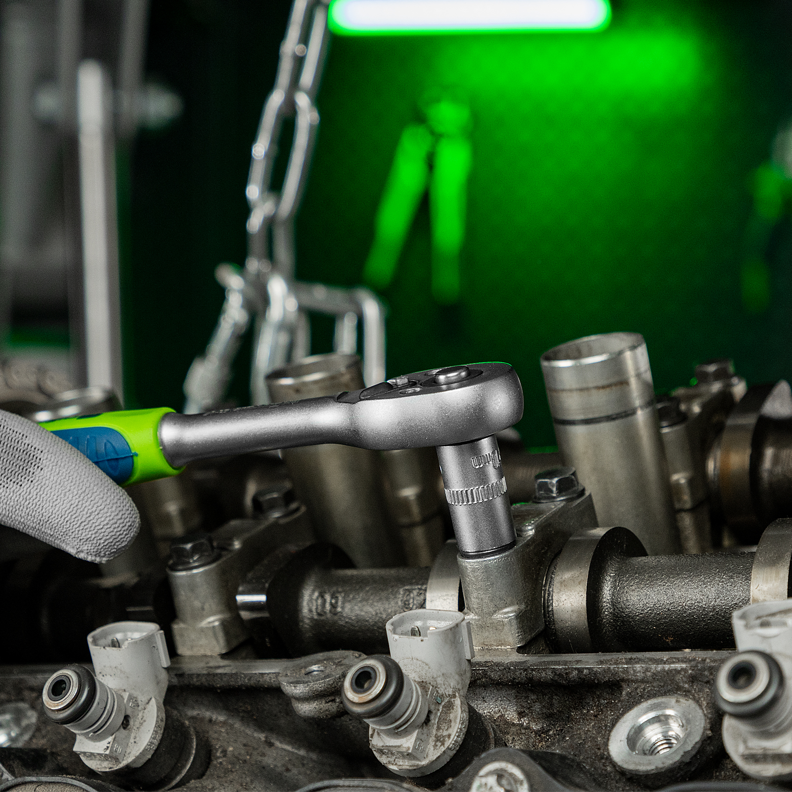 - Комфортная и эффективная работа — ключи-трещотки с 45 зубьями оснащены механизмом быстрого сброса, переключателем реверса с металлическим флажком и двухкомпонентной рукояткой.