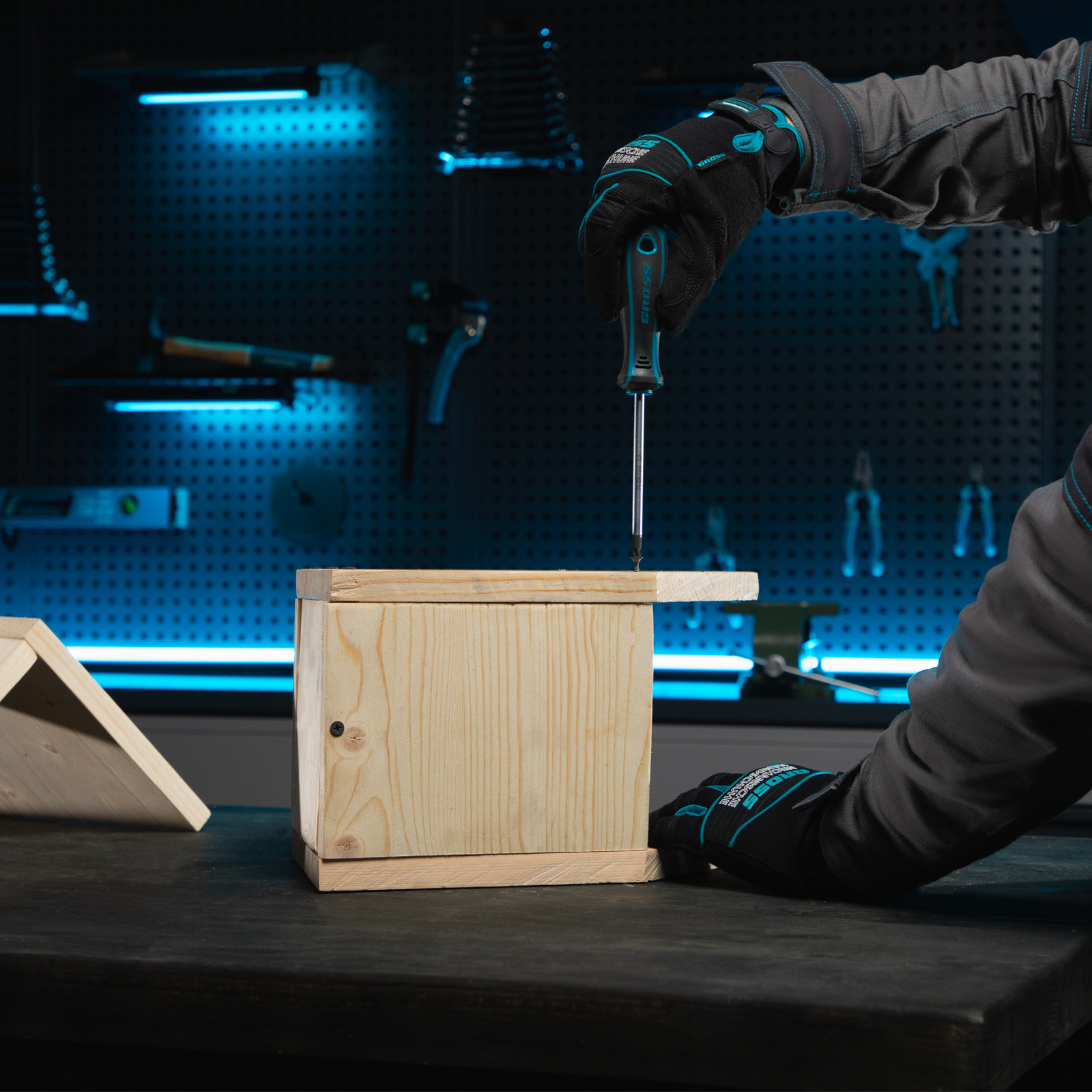 - Исключительная твердость и прочность — отвертки, биты и шестигранные ключи изготовлены из японской легированной стали S2, остальные элементы набора выполнены из хромованадиевой стали.