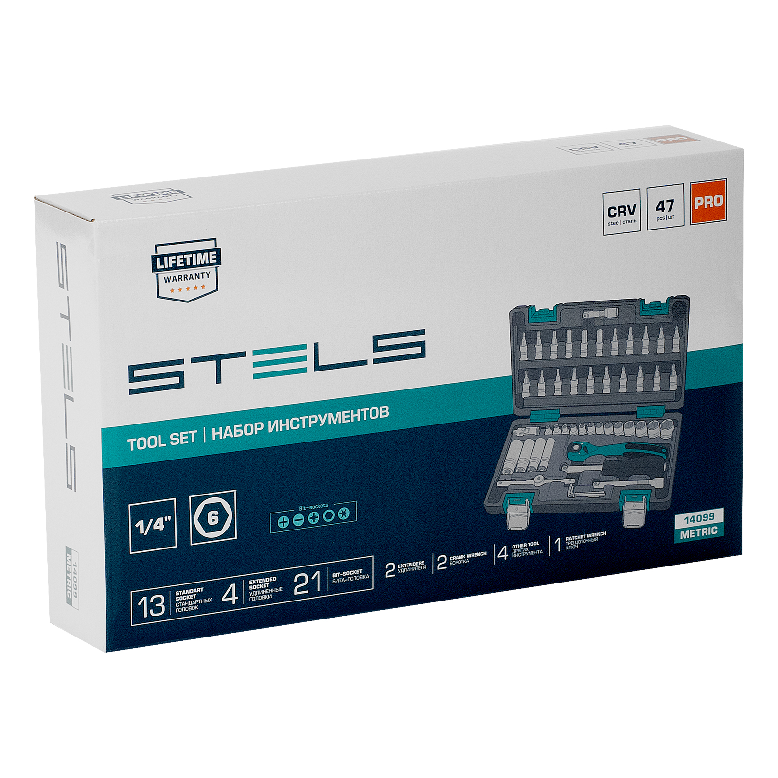 Набор инструментов, 1/4", Cr-V, S2, усиленный кейс, 47 предметов Stels в Уфе