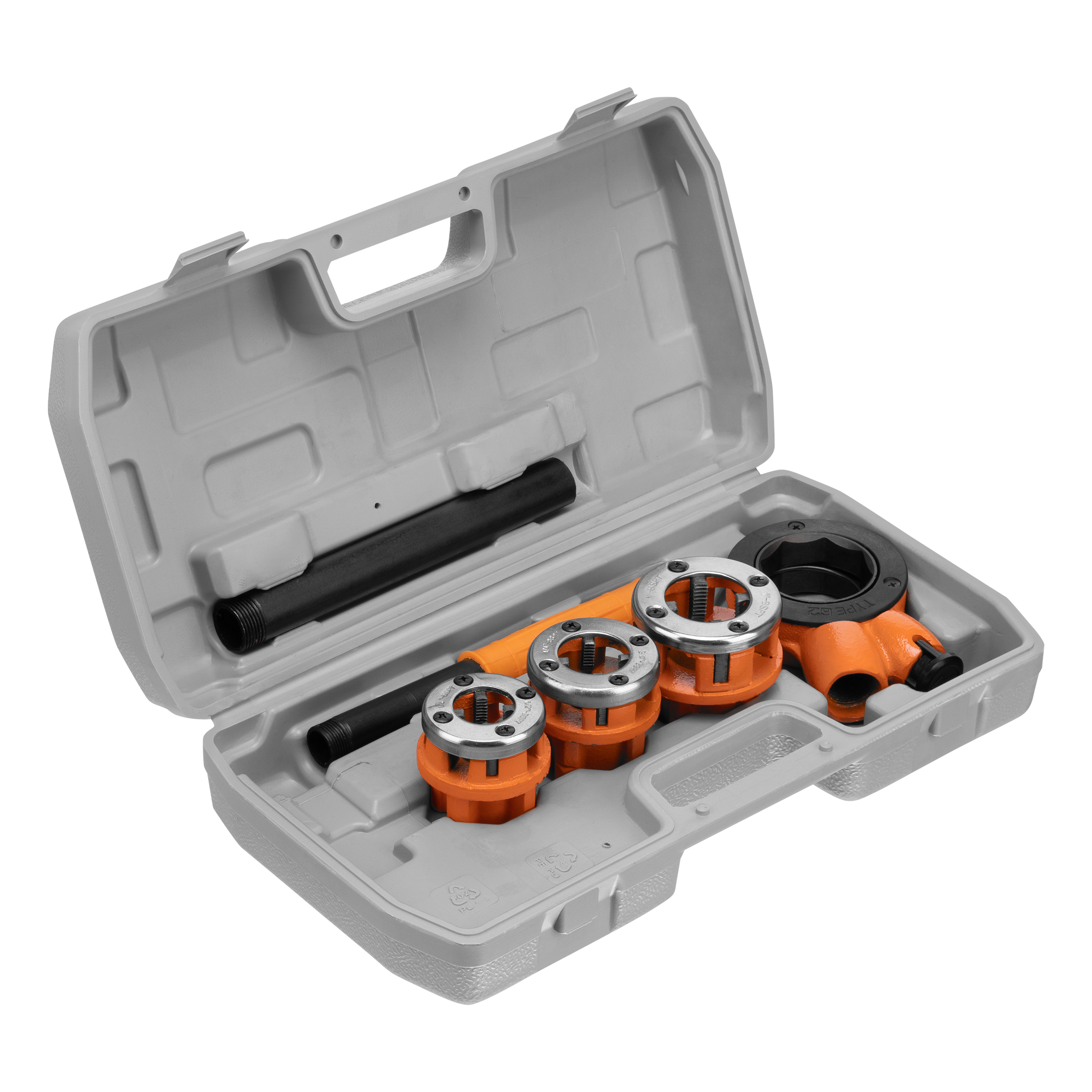 Набор Sparta 773335 включает в себя 6 предметов: клуппы наиболее востребованных размеров 1/2″, 3/4″ и 1″, а также плашкодержатель с трещоткой и удлинителем. Пригодится частному мастеру для нарезания внешней резьбы на новых трубах или ремонта старых. Плашкодержатель оснащен трещоточным механизмом, который наиболее эффективно передает рабочее усилие, а также позволяет работать в труднодоступных местах.