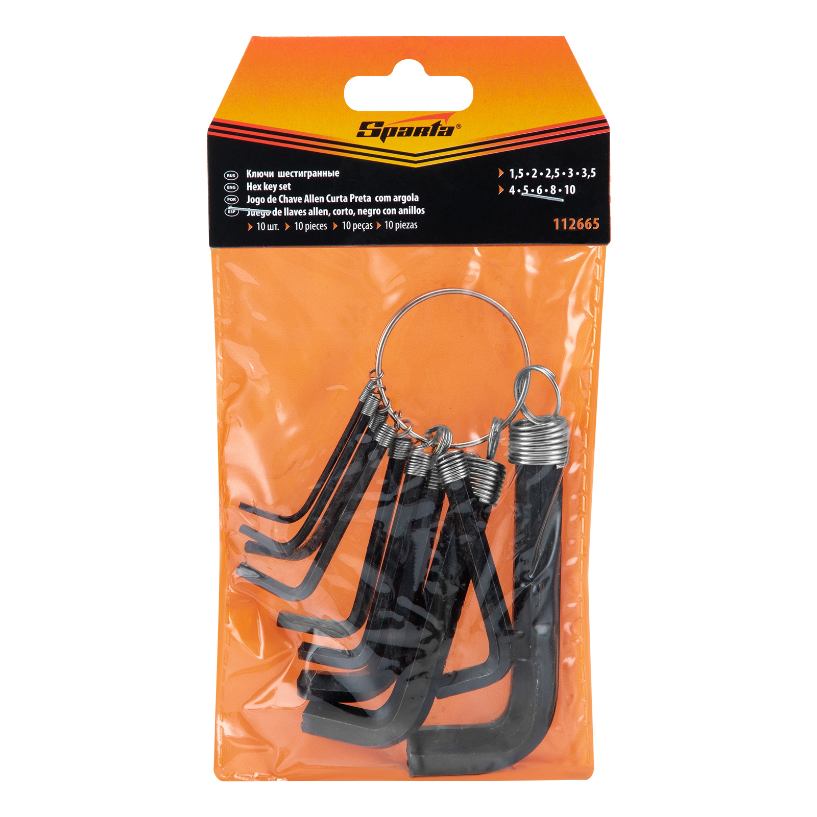 Набор Sparta 112665 из 10 имбусовых оксидированных ключей HEX размером 1,5-10 мм, на кольце, пригодится частным мастерам при проведения мелких ремонтных работ. Шестигранные ключи чаще всего используются для закручивания и откручивания крепежа со шлицем HEX во время сборки мебели и ремонта велосипедов.
