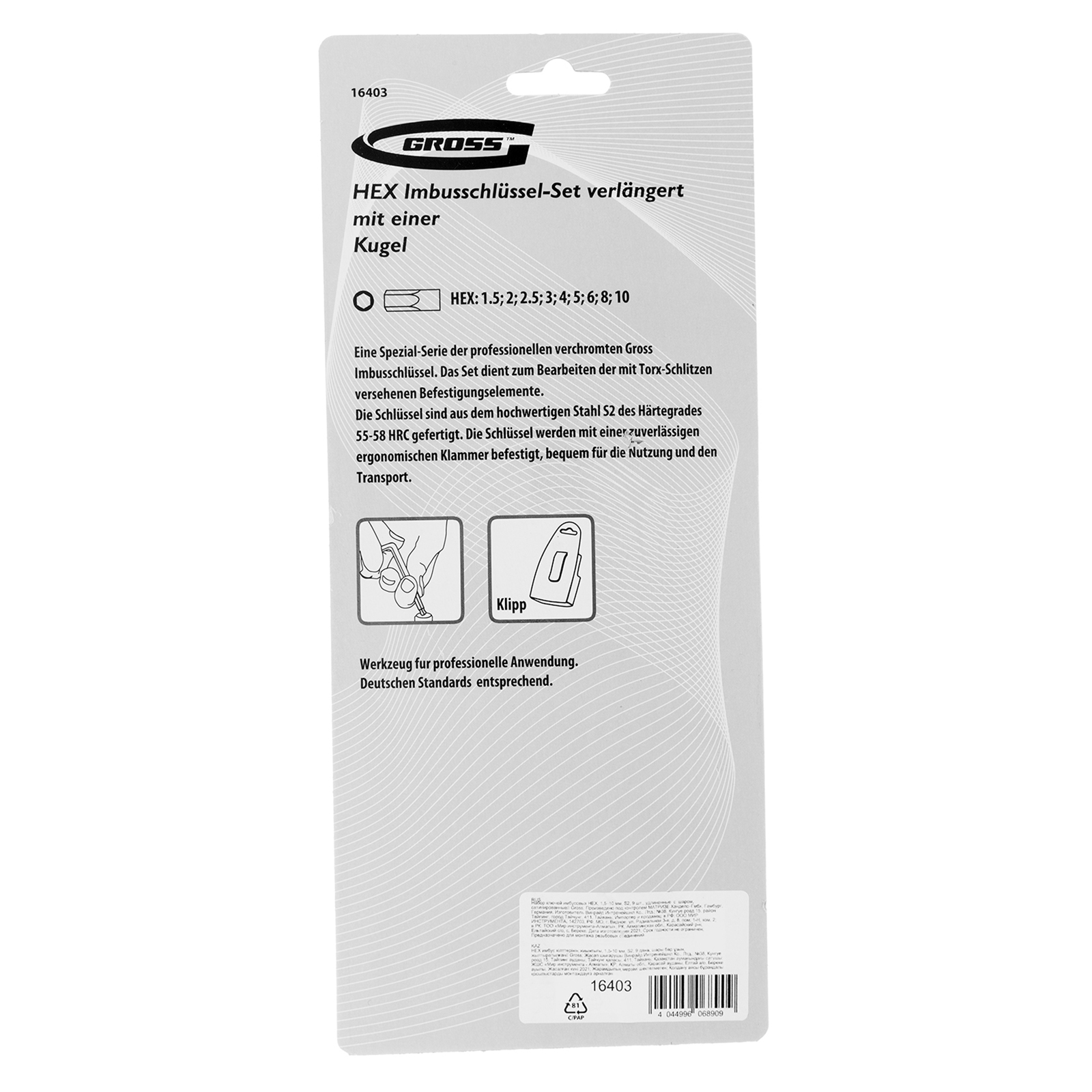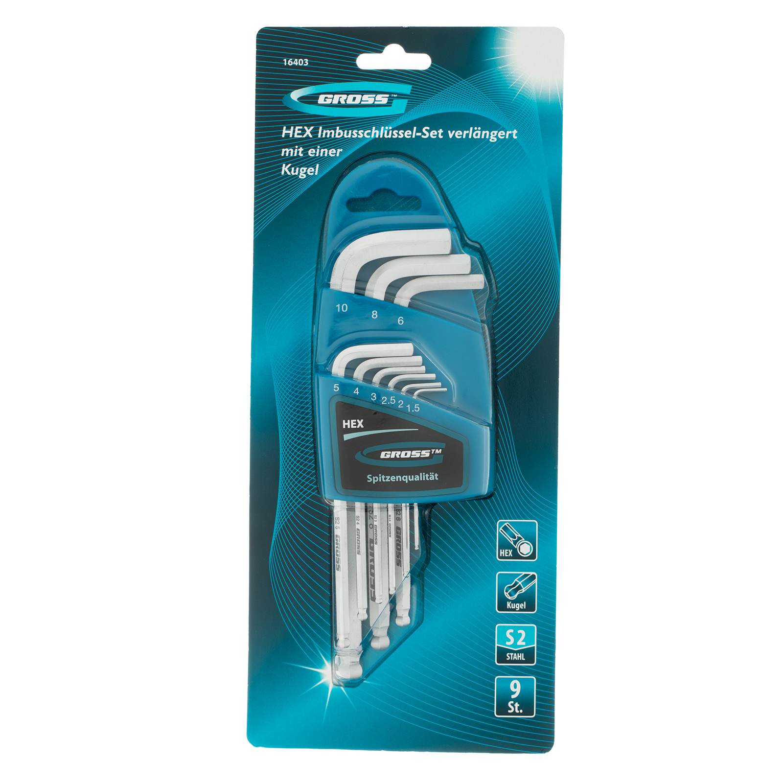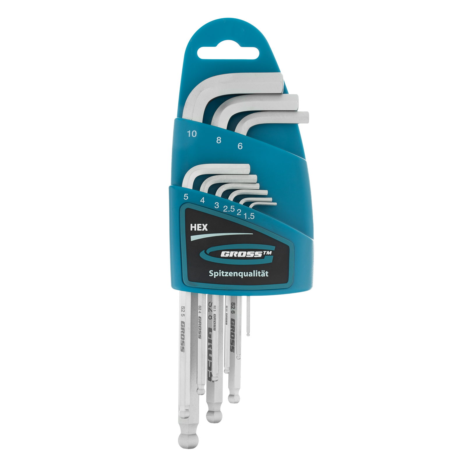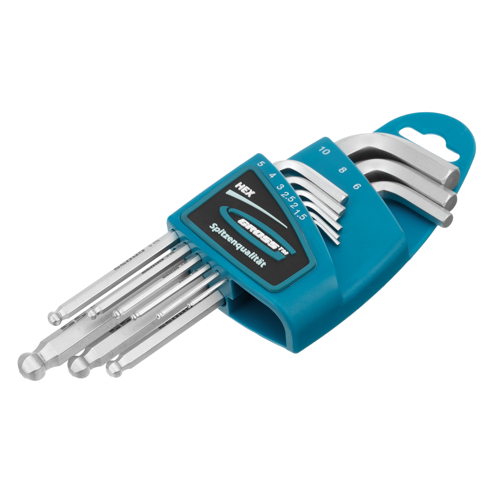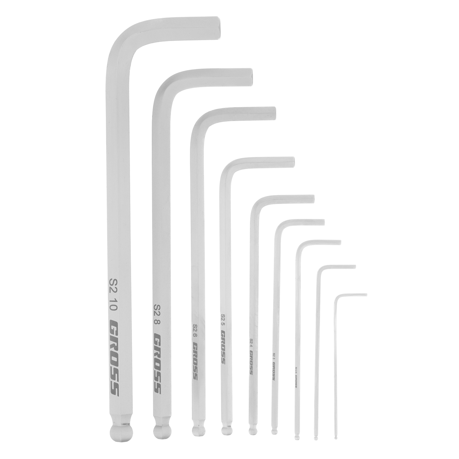 Набор ключей имбусовых HEX, 1.5-10 мм, S2, 9 шт, удлиненные с шаром, сатинированные Gross в Уфе