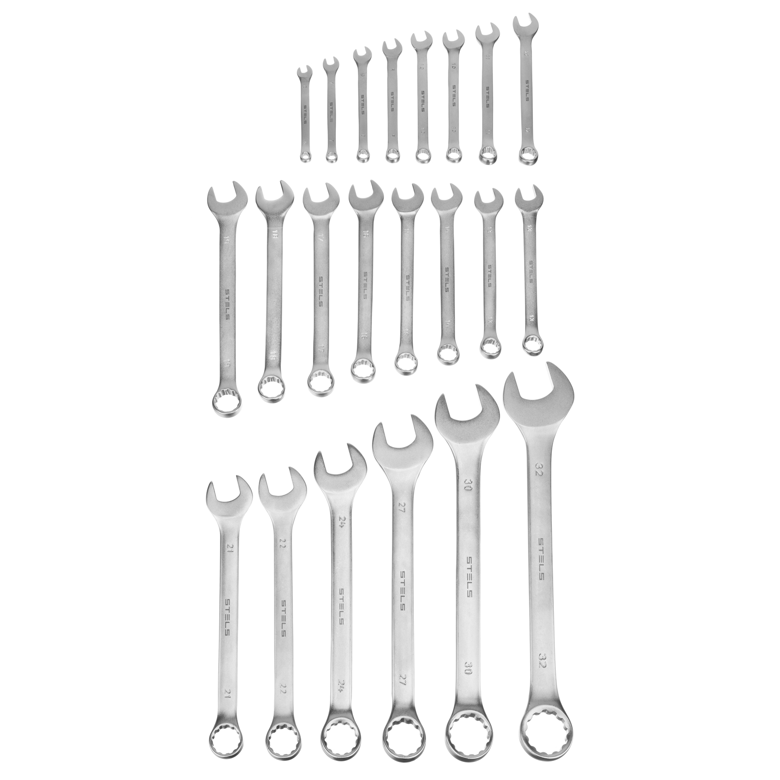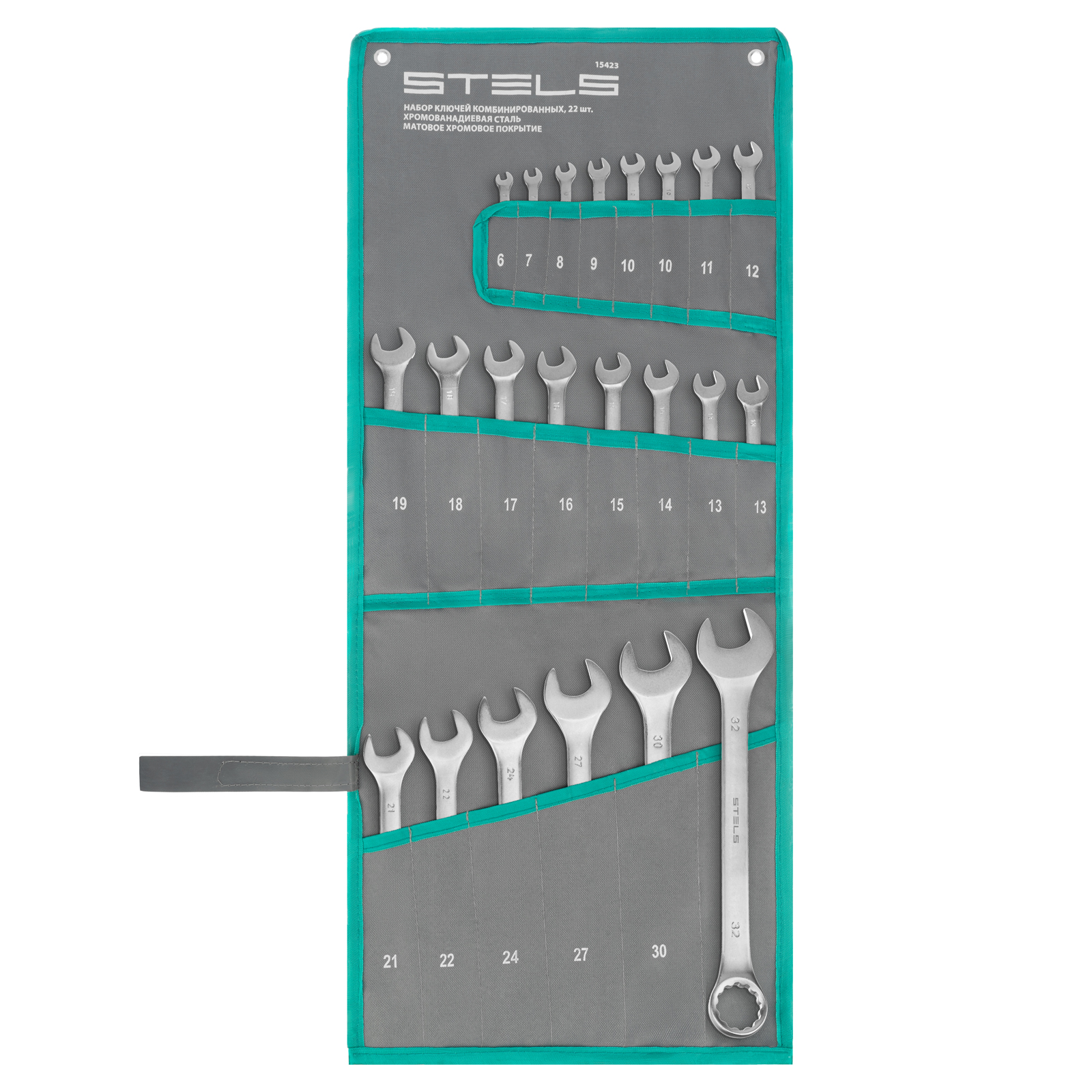 Набор ключей комбинированных 6-32 мм, 22 шт, CrV, матовый хром Stels в Уфе
