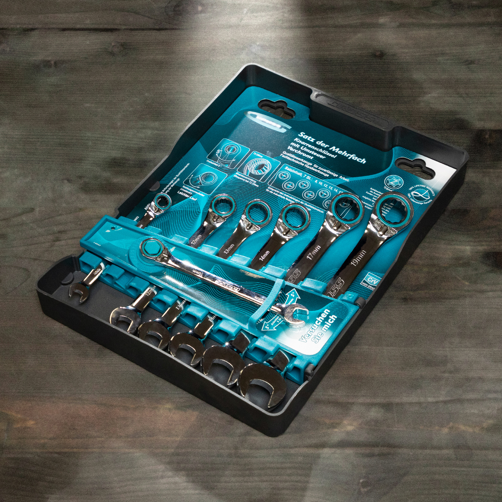 Набор ключей комбинированных с трещоткой - 7 шт, типоразмеры - 8, 10, 12, 13, 14, 17, 19 |