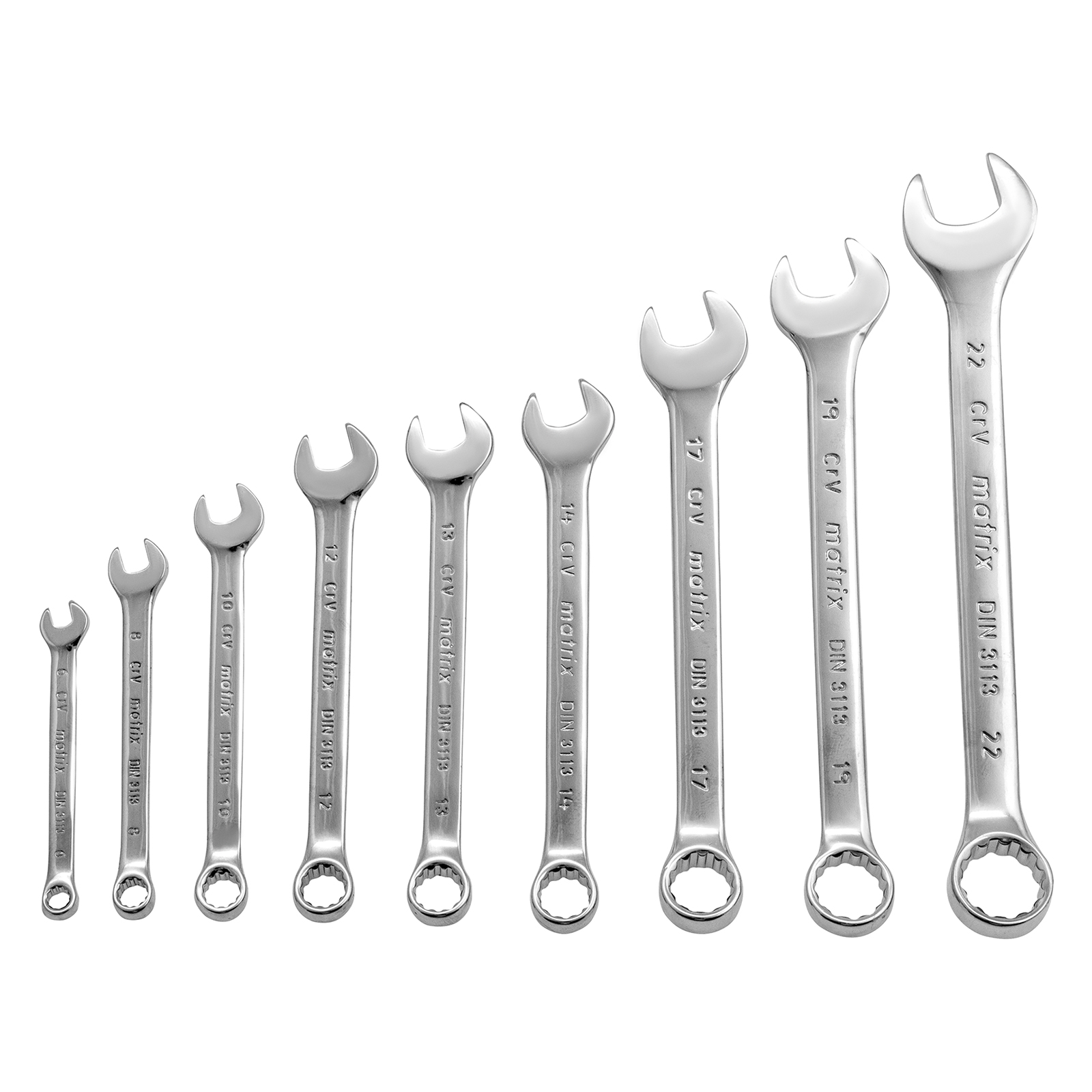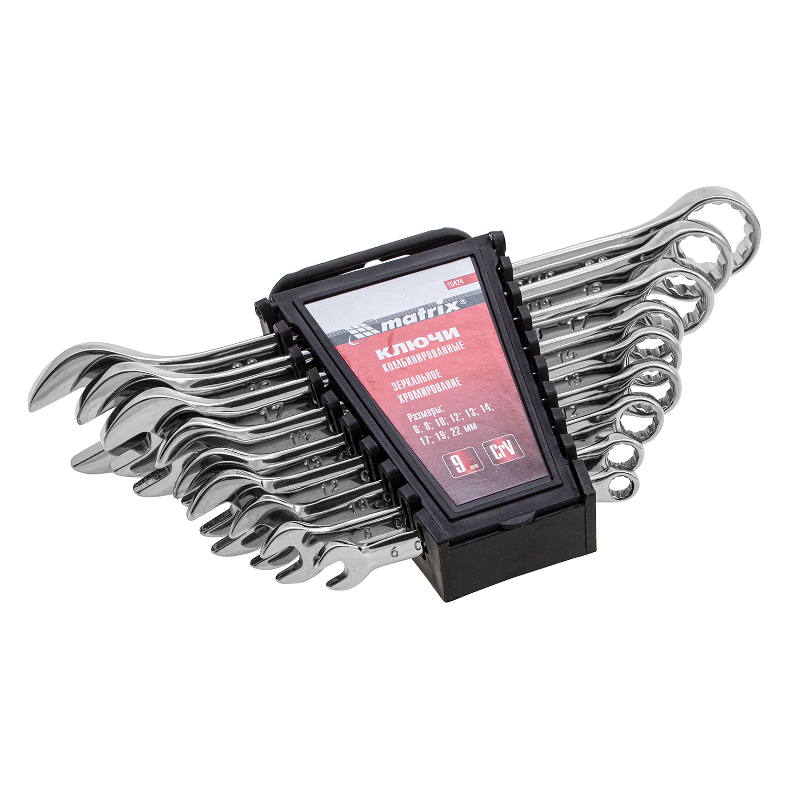Набор ключей комбинированных, 6-22 мм, 9 шт, CrV, полированный хром Matrix в Уфе