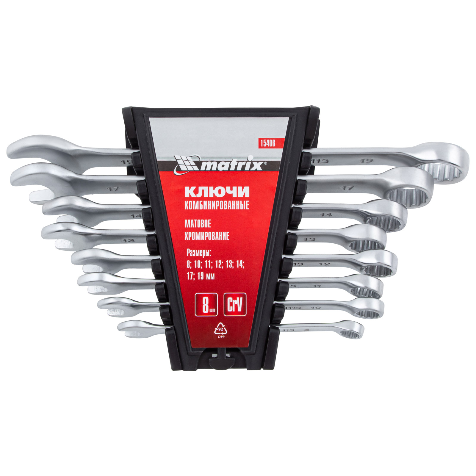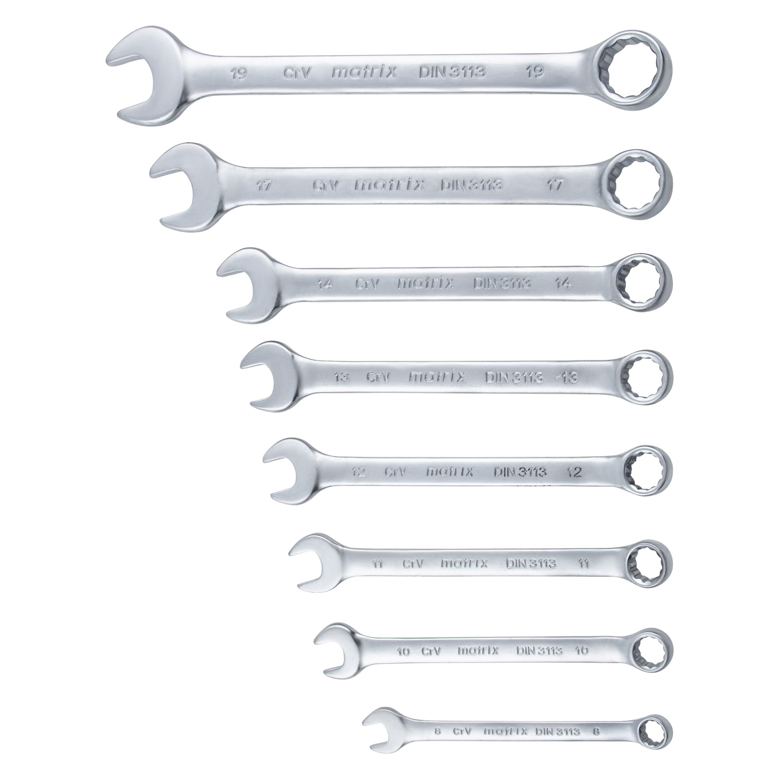 Набор ключей комбинированных, 8-19 мм, 8 шт, CrV, матовый хром Matrix в Уфе